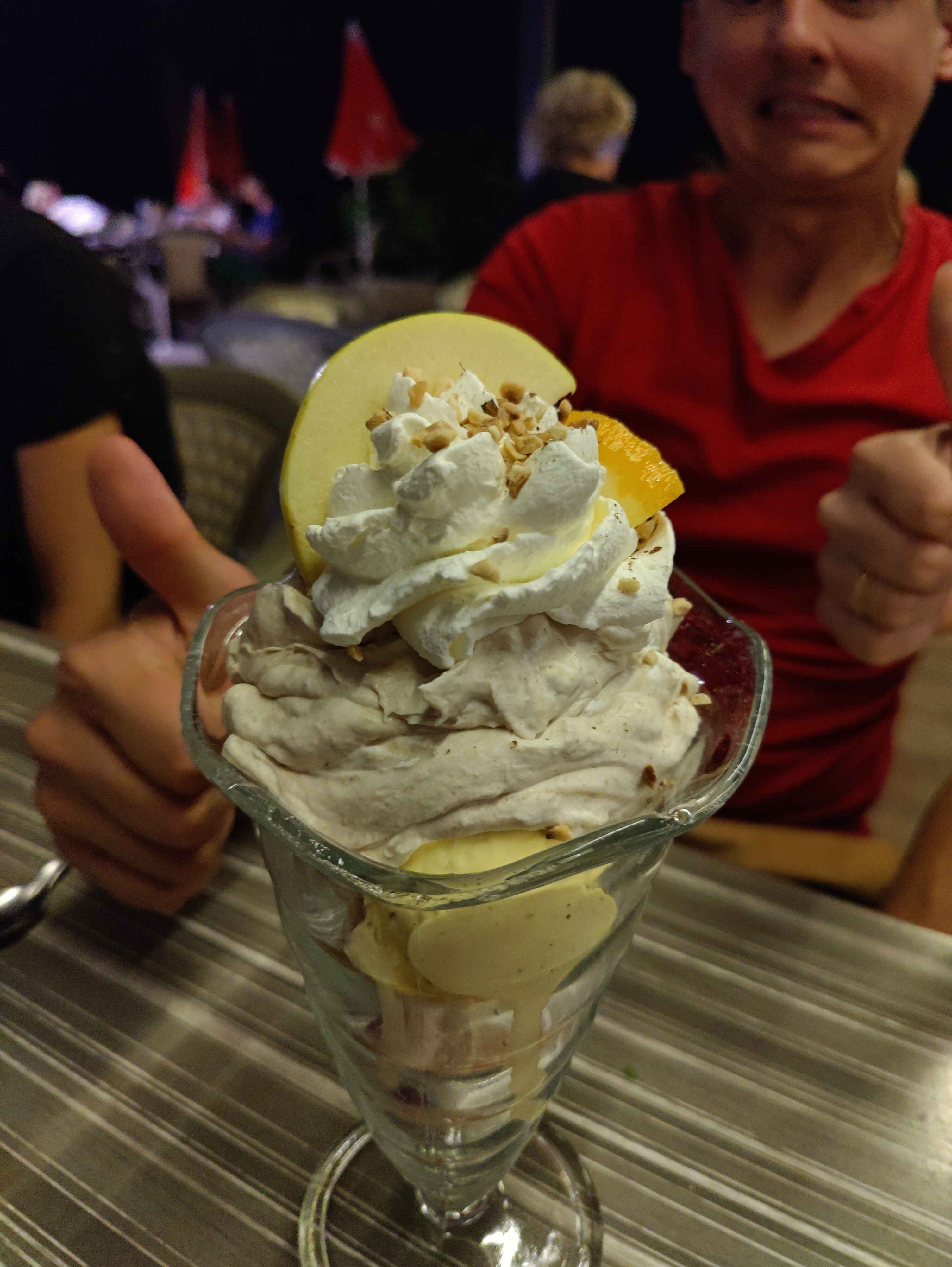 Restaurant agréable, cependant point négatif c que j'ai demandé une glace à 18h.. mais on ma refusé car c'était une heure ou il fallait diner ! Ou bien seulement boire une boisson et libérer vite la place pour les futurs clients qui vienndront diner...
