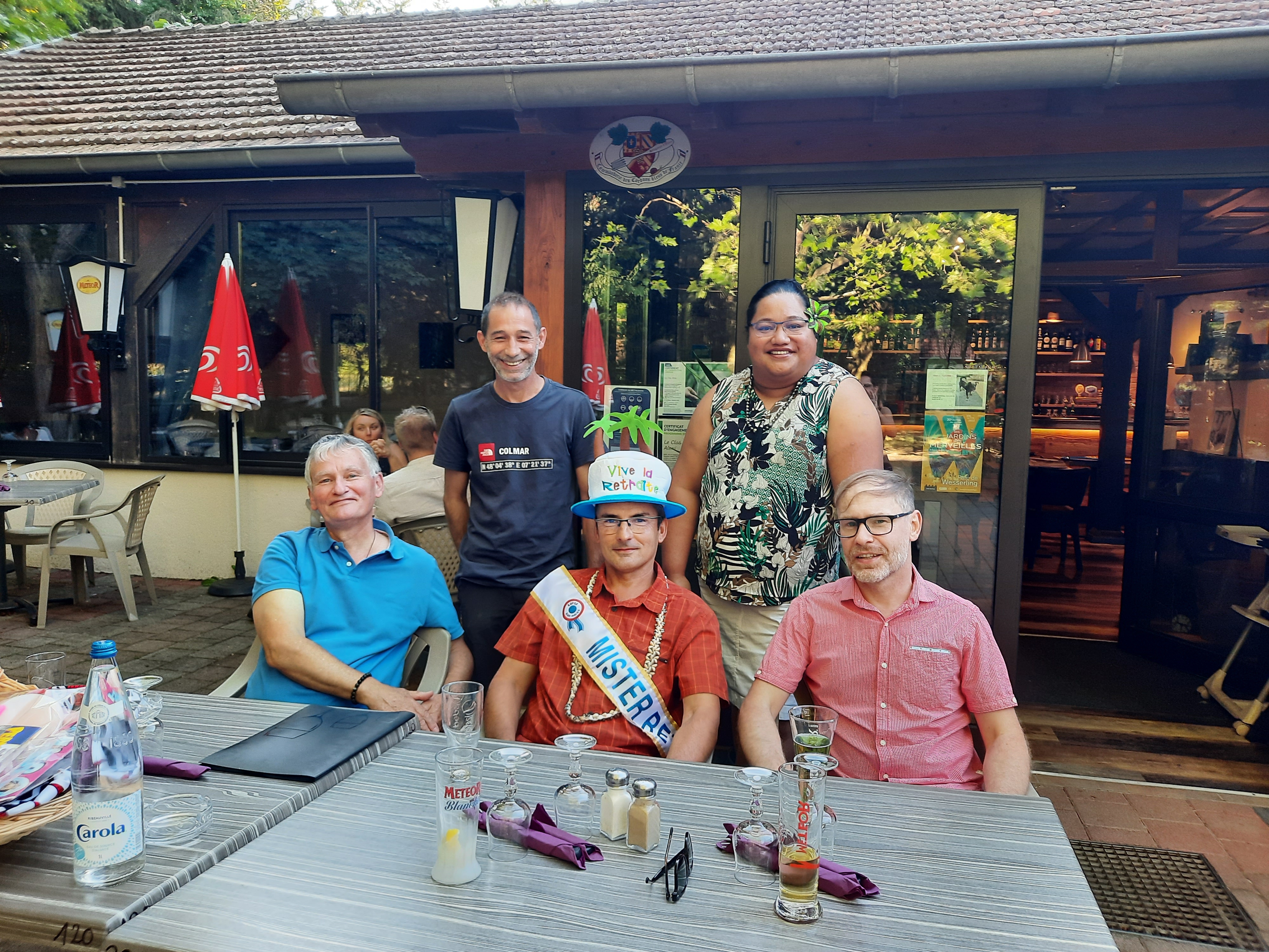 Restaurant très bien situé en pleine nature au sud de Colmar. Personnel naturellement charmant et accueillant. Locaux agréables, Pergola et terrasse ombragées. Quelques tables sont proches du petit étang dans lequel évoluent des carpes énormes! La carte est assez simplifiée mais le Plat du jour à 12€ comprenant le plat et le dessert est beau et bon. Parking aisé et ombragé sous les grands arbres. Aire de jeux pour les enfants. Accès PMR facile.