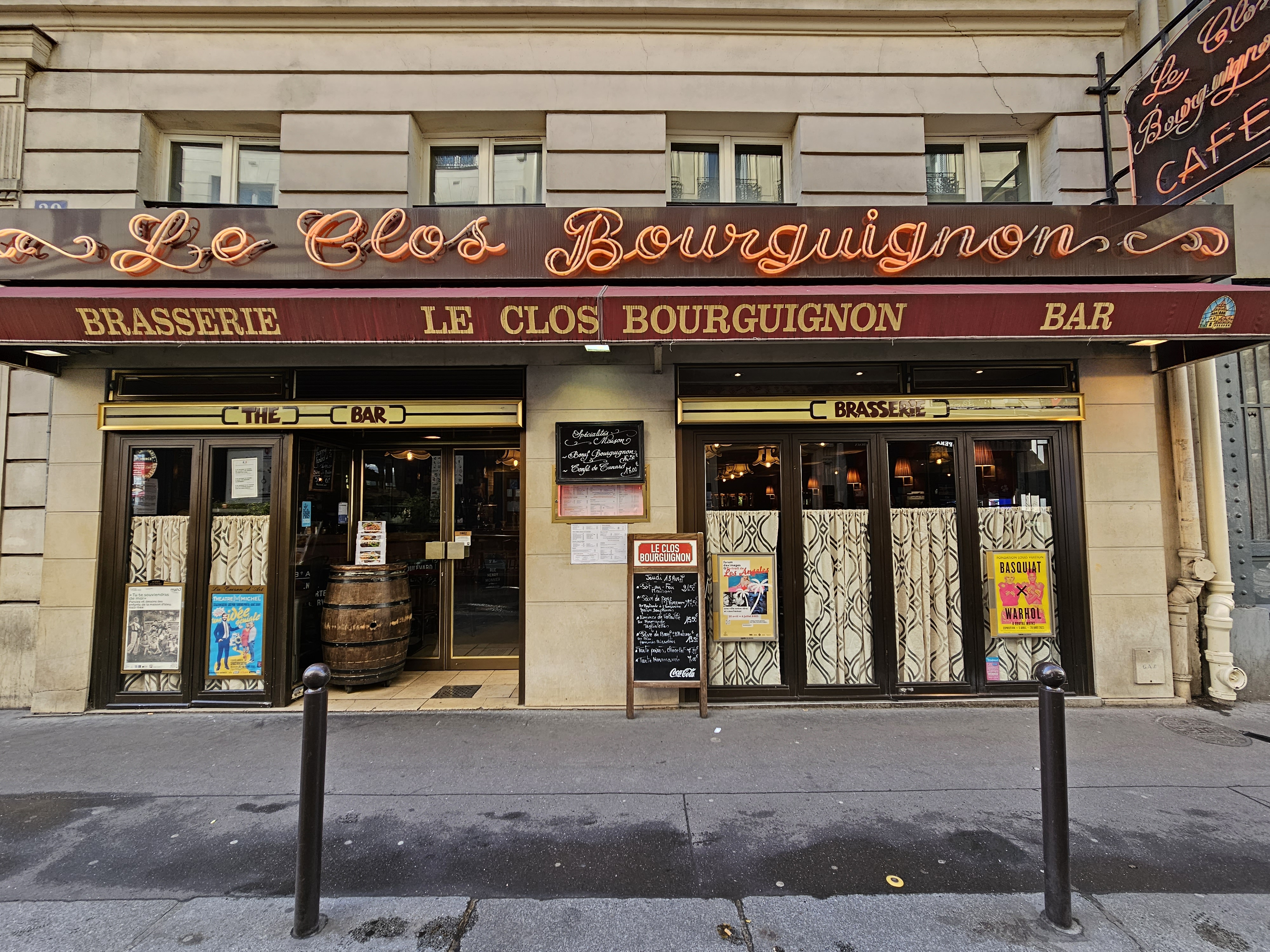 Nous sommes venus ici après avoir fait du shopping aux Galeries Lafayette et au Printemps à quelques pas. Cet endroit était très animé par les locaux. Ils ont un menu en anglais et un autre avec des photos, ce qui est utile. Notre serveur était rapide et a fait de son mieux. La nourriture était correcte. L'escargot était dans une sauce crémeuse épaisse et dans l'ensemble, je pense que le plat a été préparé dans une poêle plutôt que cuit au four. Le bouillon de soupe à l'oignon français était un peu fade et mince. Nous avons vraiment adoré les cuisses de grenouilles - tendres et vraiment savoureuses avec le beurre à l'ail !
