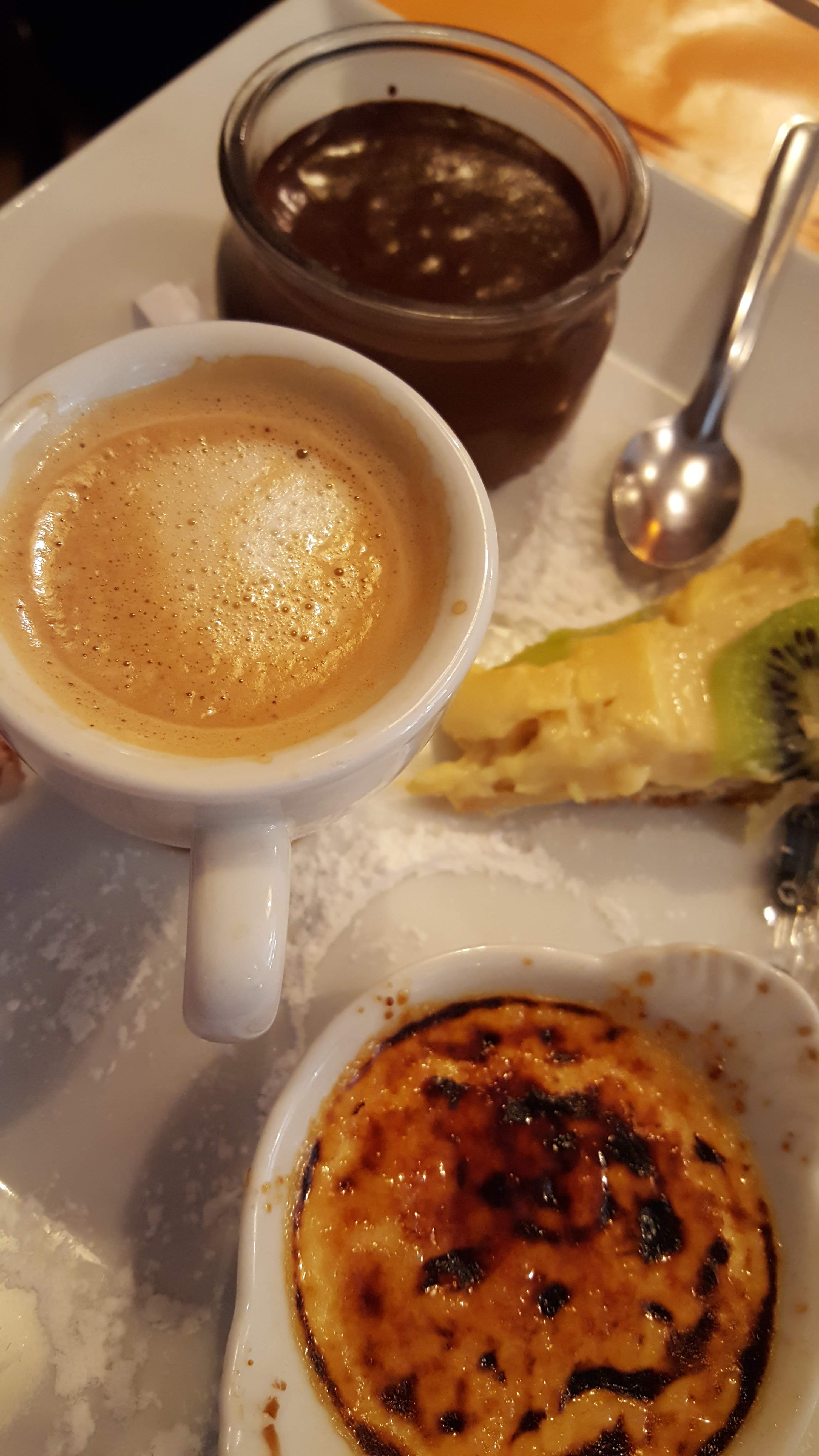 J'ai eu la meilleure crème brûlée de ma vie ici et j'en ai eu beaucoup. N'a pas de goût de brûlé et un équilibre parfait de goût et de texture en bouche. Mon taatare était trop relevé à mon goût, mais cela ne veut pas dire qu'il n'était pas de bonne qualité. L'assiette de fromages de ma copine était délicieuse. Notre serveuse était une joie. Optez pour une cuisine française simple et des prix abordables.
