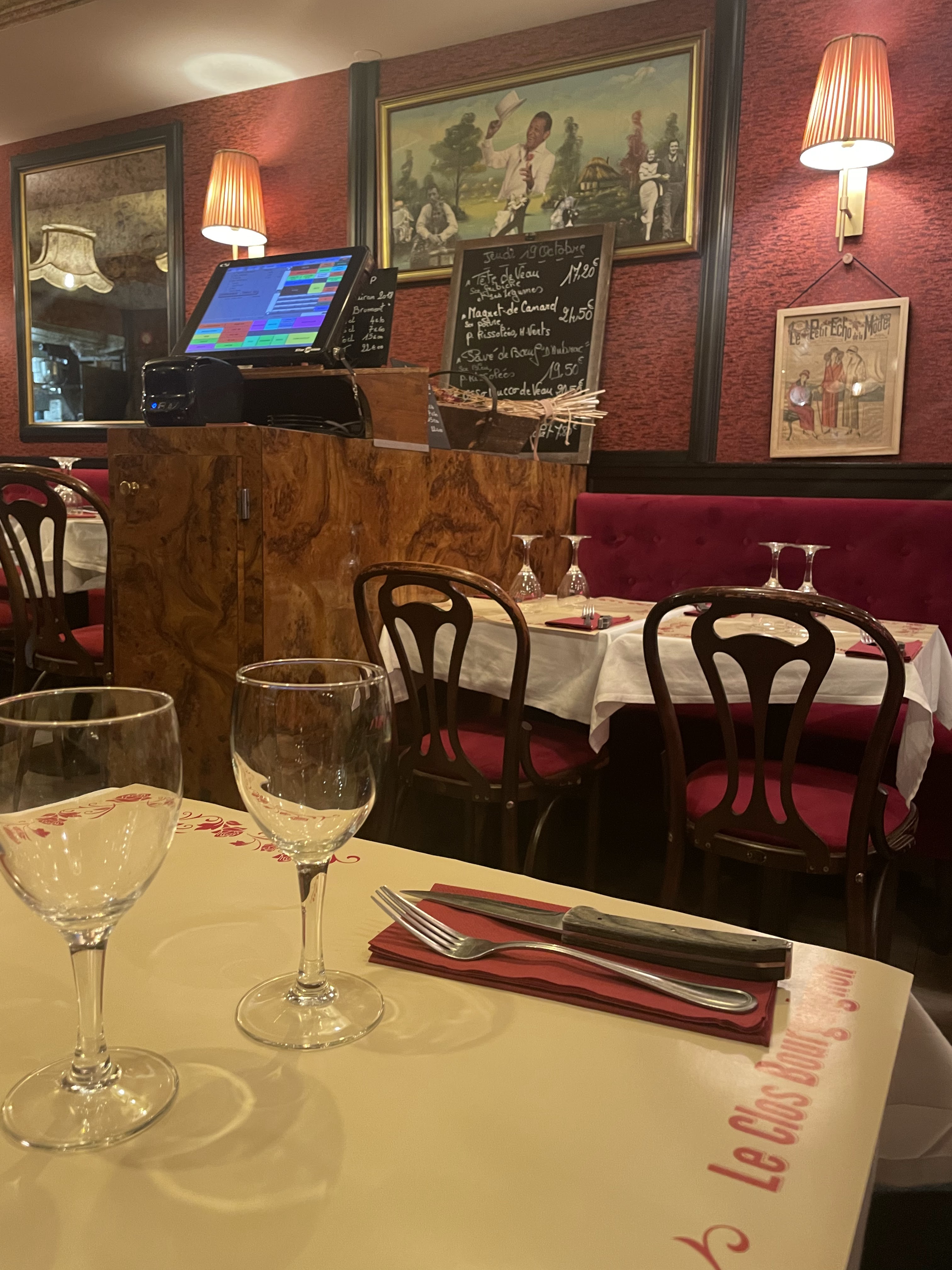 Curieux établissement que ce restaurant un peu vintage qui nous replonge plusieurs décennies en arrière, avant, quand c'était bien. Ces notions bien subjectives témoignent cependant de la sensation que l'on a en entrant au Clos Bourguignon: on est chez nous, protégés du boucan des bars à la mode et des bobos répendant leur suffisance et leurs carcasses sur les trottoirs des rues du quartier gentrifié au possible. Un havre de paix, délicieusement avant. Accueil au top, cuisine simple et parfaitement maîtrisée.