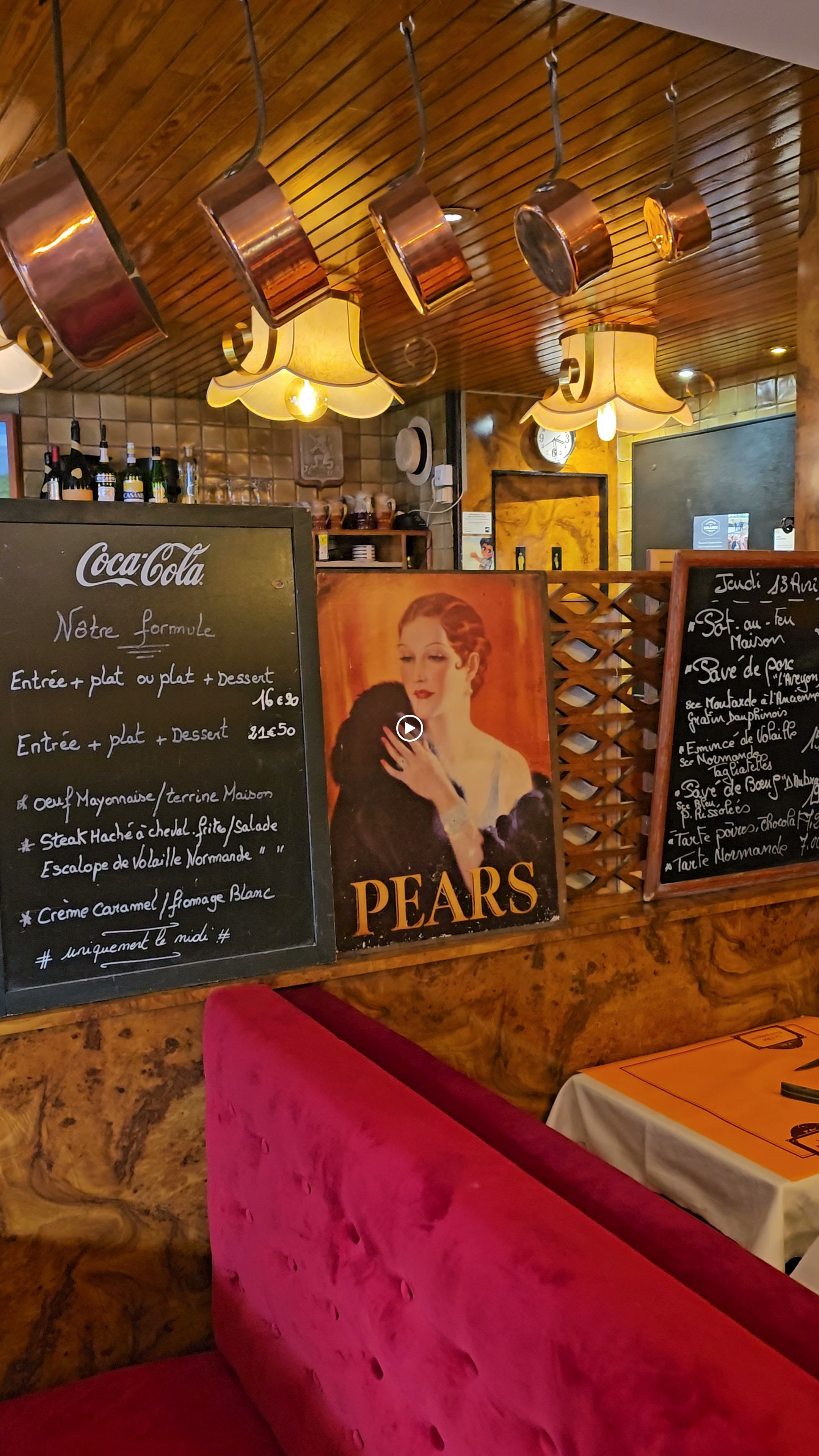 Je dois avouée que j'ai été un peu déçue. Le raffinement dans l'assiette est à l'image du décor, un peu vieillot et les saveurs un peu simples pour les prix affichés. Un service moyen mais ça fait le job. Juste si la serveuse pouvait un minium sourire, on avait vraiment l'impression de l'ennuyer. Par contre si vous voulez un endroit hors du temps, c'est le bon. On se croirait dans la vieille époque des brasseries parisiennes. ... Et un peu dans le dessin animé Ratatouille... Littéralement. Une petite souris s'est baladée toute la soirée sous la banquette. J'espère que l'hygiène de la cuisine est tout de même irréprochable et que cette petite bête s'est faufilée par la porte.
