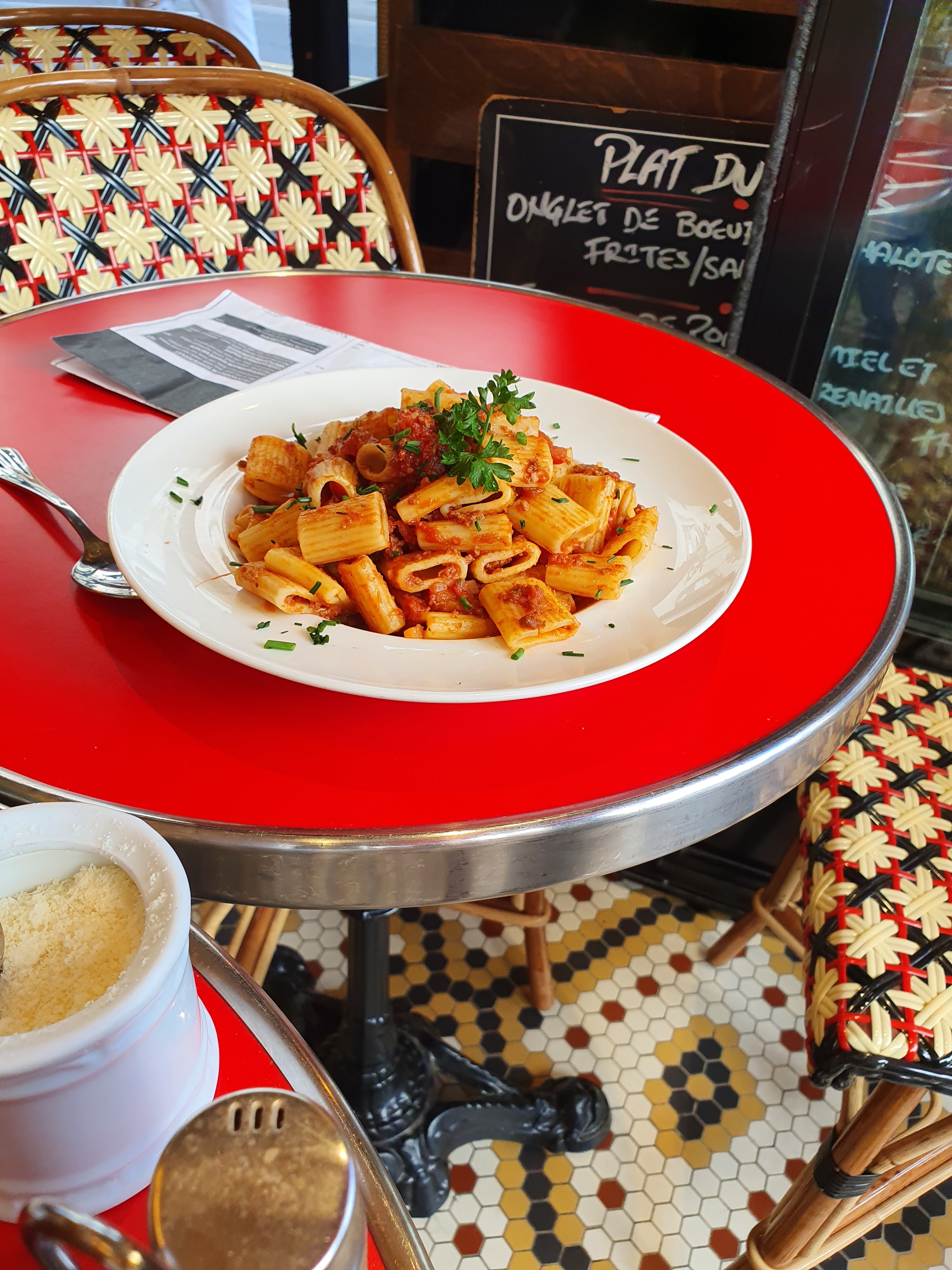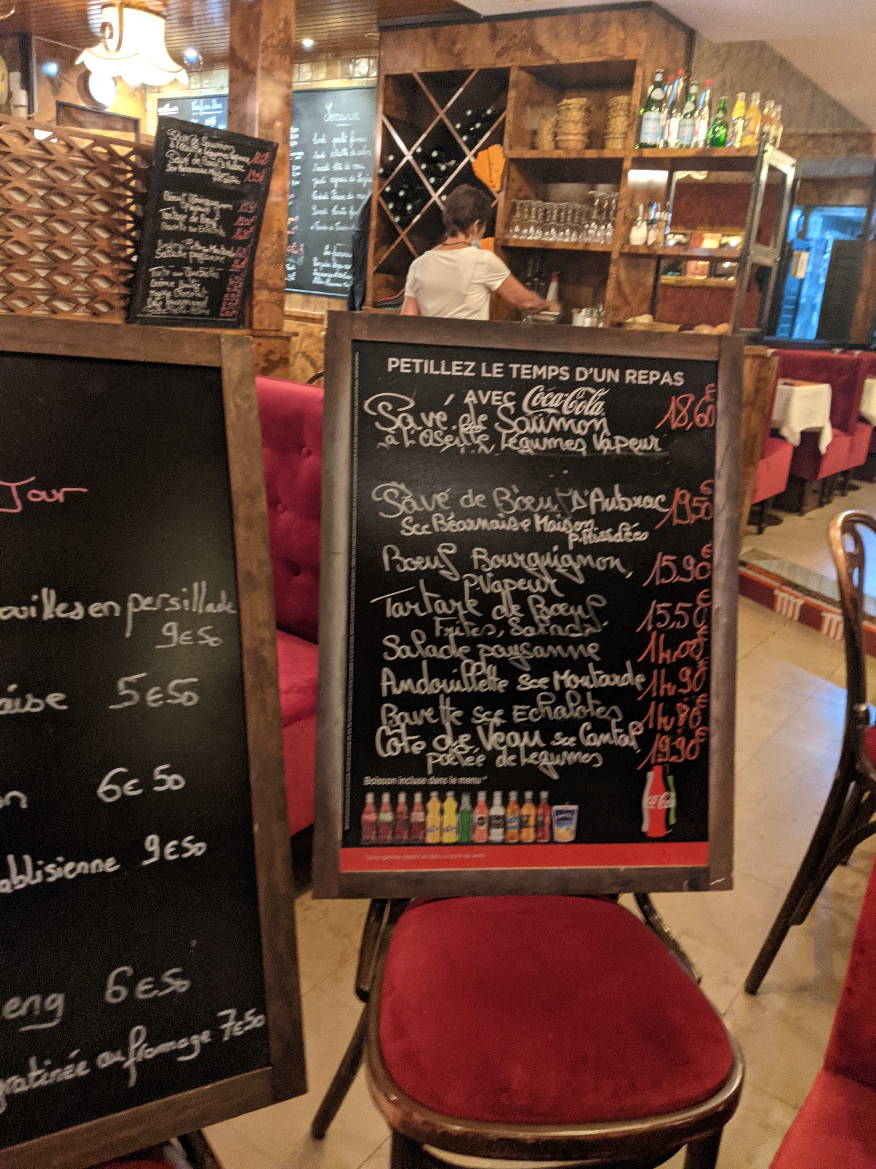 Nous y avons déjeuné. C'était une journée bien remplie, les gens des bureaux y déjeunaient et les touristes. Nous nous sommes assis à une petite table près de la fenêtre et n'avons pas été déçus. Bonne nourriture, le barman ne parlait pas anglais mais il était tellement serviable et gentil. J'ai utilisé tous les mots français que je connais :)