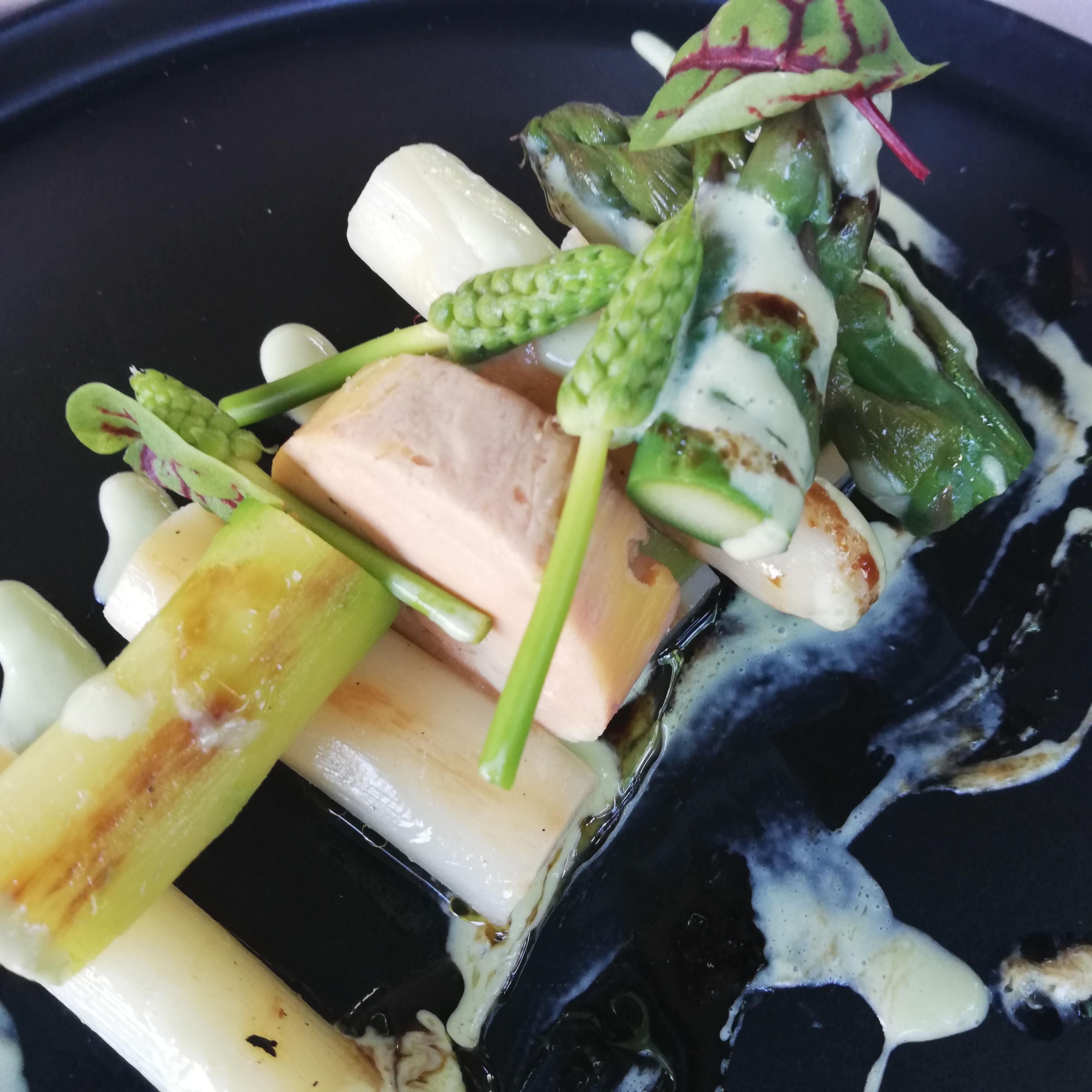 Délicieux repas avec la découverte de la pousse de tagette. Salle Claire et lumineuse . Service parfait Accueil chaleureux