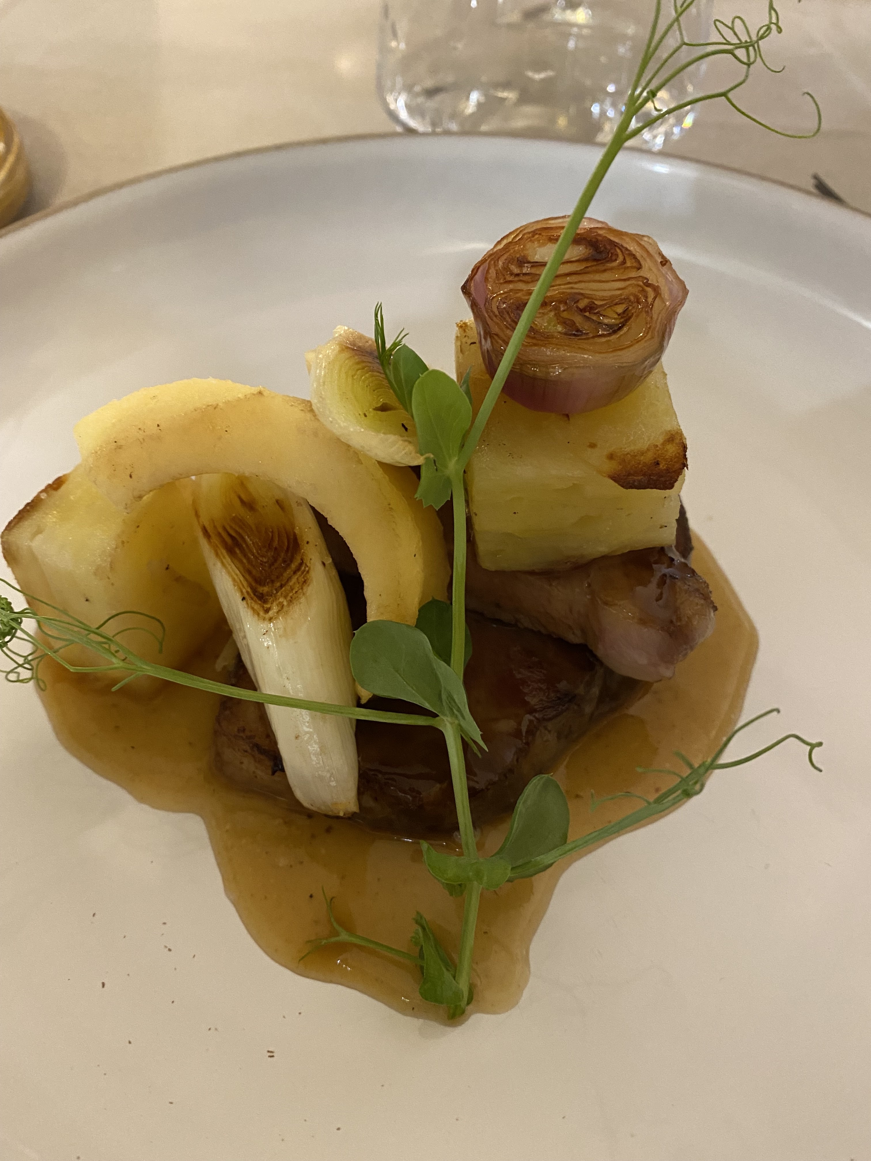 Superbe découverte. Cuisine inventive. Qualité des produits . Accueil parfait. Amuses bouche saumon fumé boudin mangue et 2 olives. En ENTREE THON ROUGE OU FOIE GRAS PLAT pigeonneau ou carré de porc Avant dessert succelent mousse ananas sorbet basilic gelee citron vert et mignardises pour accompagner le café. Repas avec un grave château de respide. Tarif en lien avec la qualité 49 euros par personne.