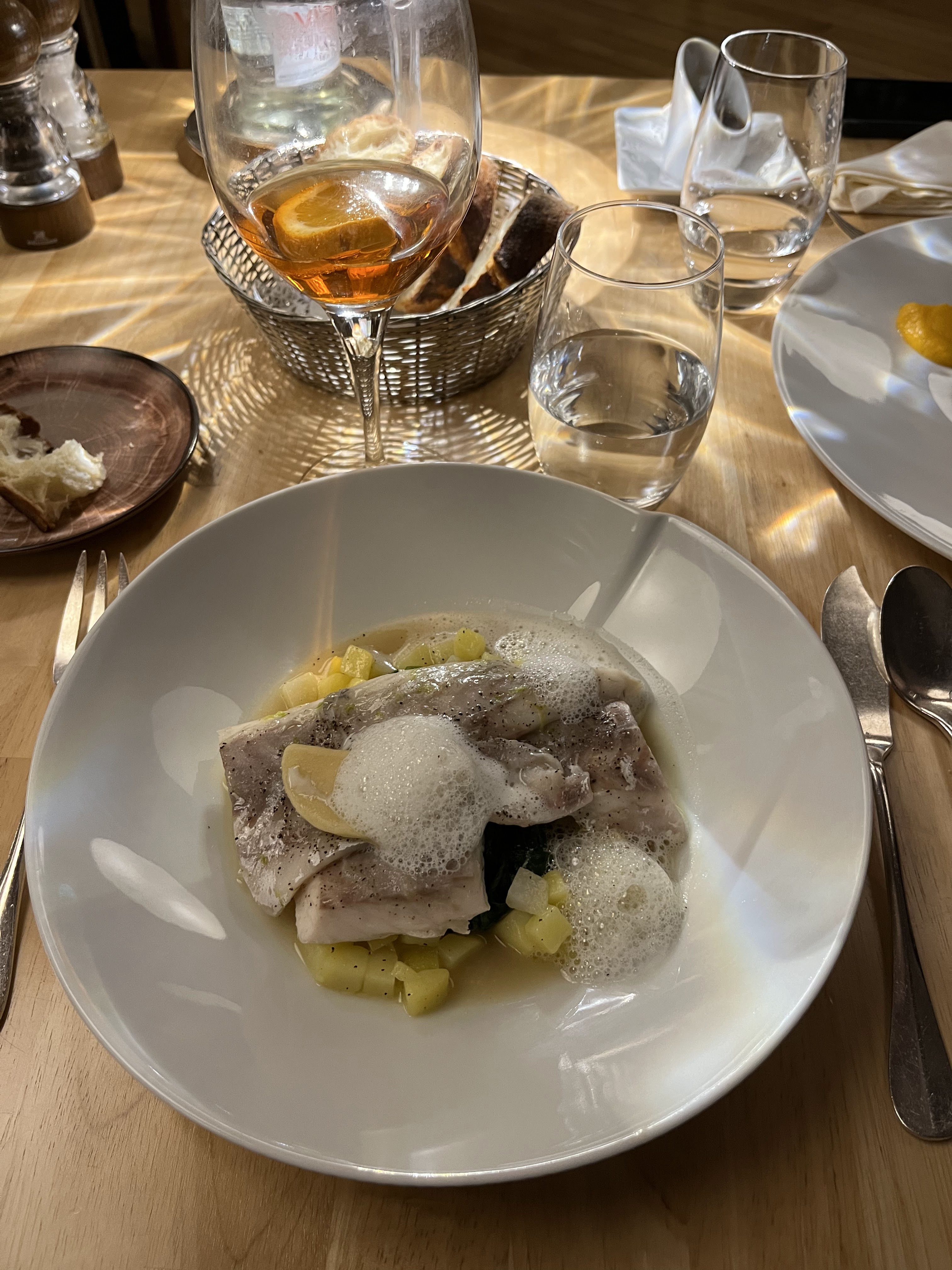 un dîner remarquable ! des plats simplement beaux,bons et copieux,les saveurs sont là ! Côté vins il serait appréciable d étoffer la carte cote rouge 37,5 cl ! Laissez vous aller en Bourgogne et beaujolais,se sont des vins ronds,peux tanniques riches en fruits pour beaucoup d appellations! ils manquent dans ce format de bouteille. le vin blanc saint Véran est très bien! le service est impeccable et puis on partage ce qui est bien et aussi ce qui est moins bien avec le personnel ! Ce personnel qui est à l écoute c est important ce partage ! la salle est haute sous plafond,on apprécie la quiétude de ce lieu et puis elle est bien aménagée,la balance entre ancien et moderne est très bien réalisé! Bravo à toute l équipe !