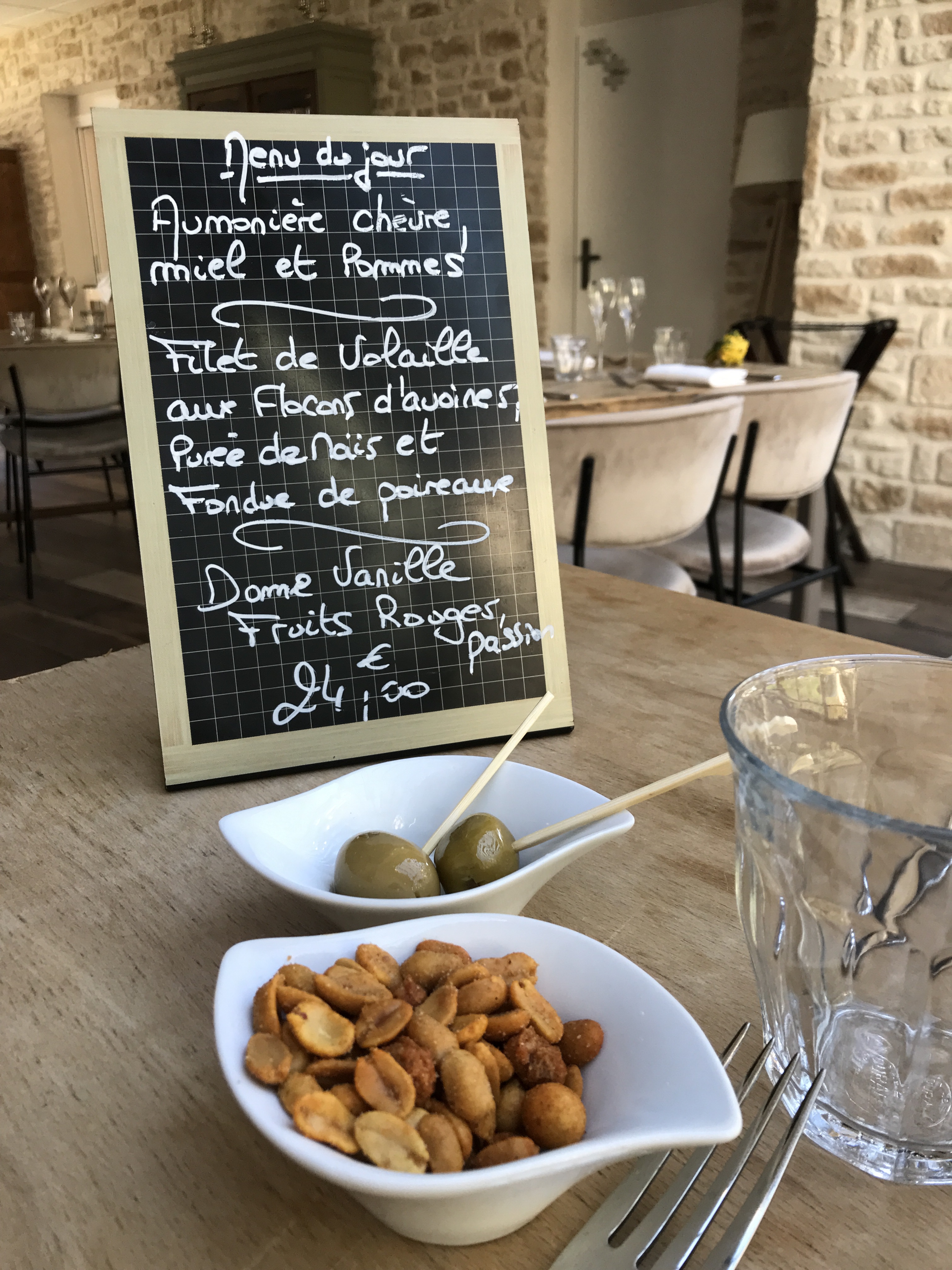 Une très belle découverte ce restaurant à la campagne ! Ambiance chaleureuse, la terrasse est un bel espace décoré avec beaucoup de meubles de récupération remis au goût du jour avec beaucoup d'idées. Visite le 29 octobre. Personnel très très sympathique. Belles présentations des assiettes, un grand bravo au chef!! De bons et beaux produits frais et cuisinés vraiment maison, un vrai bonheur !! Notre choix, assiette de la mer et un crémeux de panais truffé (excellents et raffinés) ; plats : cordon bleu revisité (il faudrait peut être un peu plus de chaource), excellent malgré tout et dos et saumon à la plancha (à ne pas rater, un délice) ; côté dessert, un régal avec le moelleux chocolat glace caramel et un macaron café vanille de Madagascar. Nous sommes ravis d'avoir passé un excellent moment, à renouveler et surtout à recommander 👏👏👏