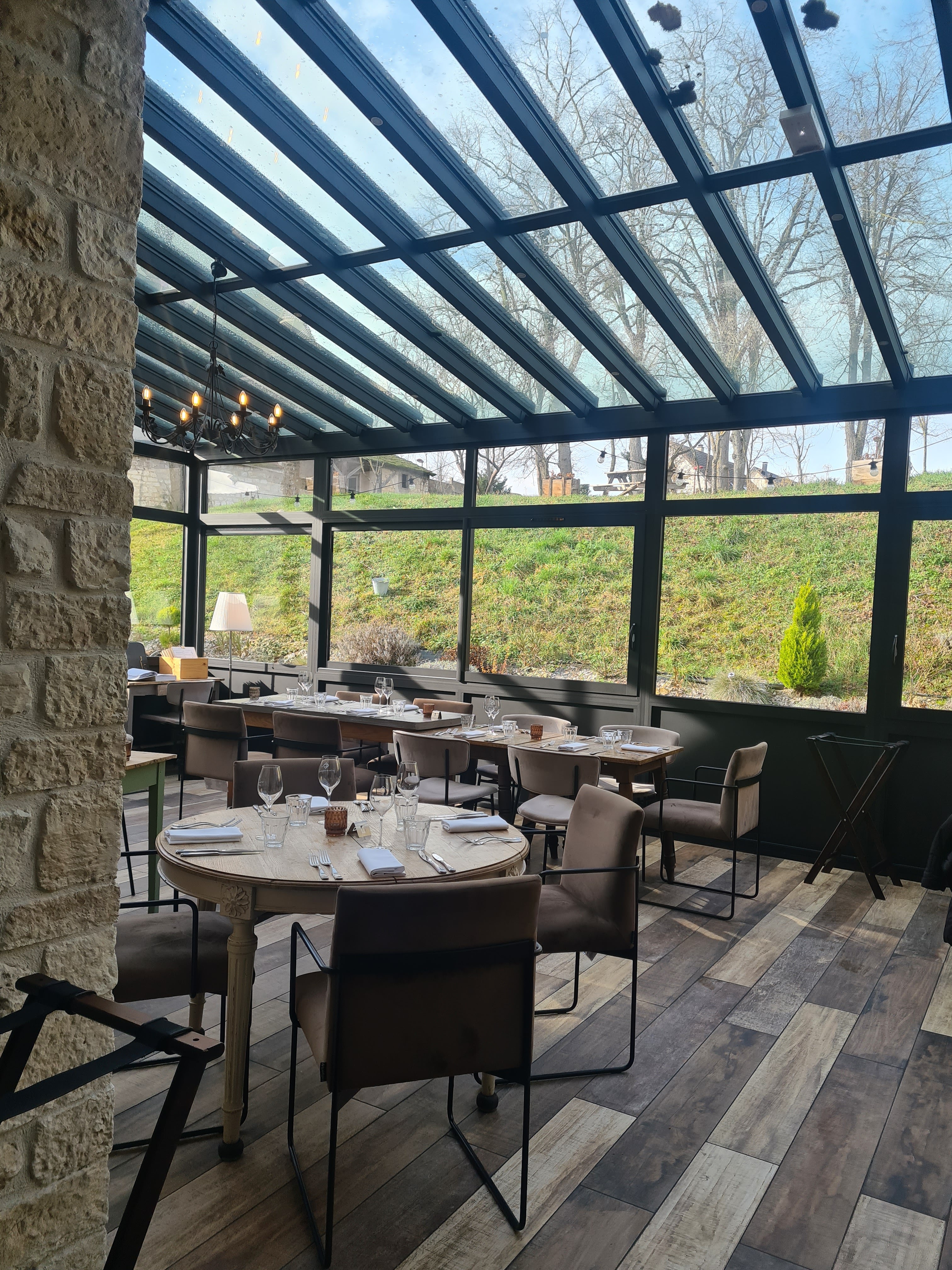 Restaurant très agréable et chaleureux. La verrière , malgré le temps pluvieux, était un endroit parfait pour le déjeuner. Et dans l'assiette ... Des produits frais, bien cuisinés et de saison. Des assiettes joliment présentées et copieuses. Un service discret mais sympathique. Nous reviendrons !