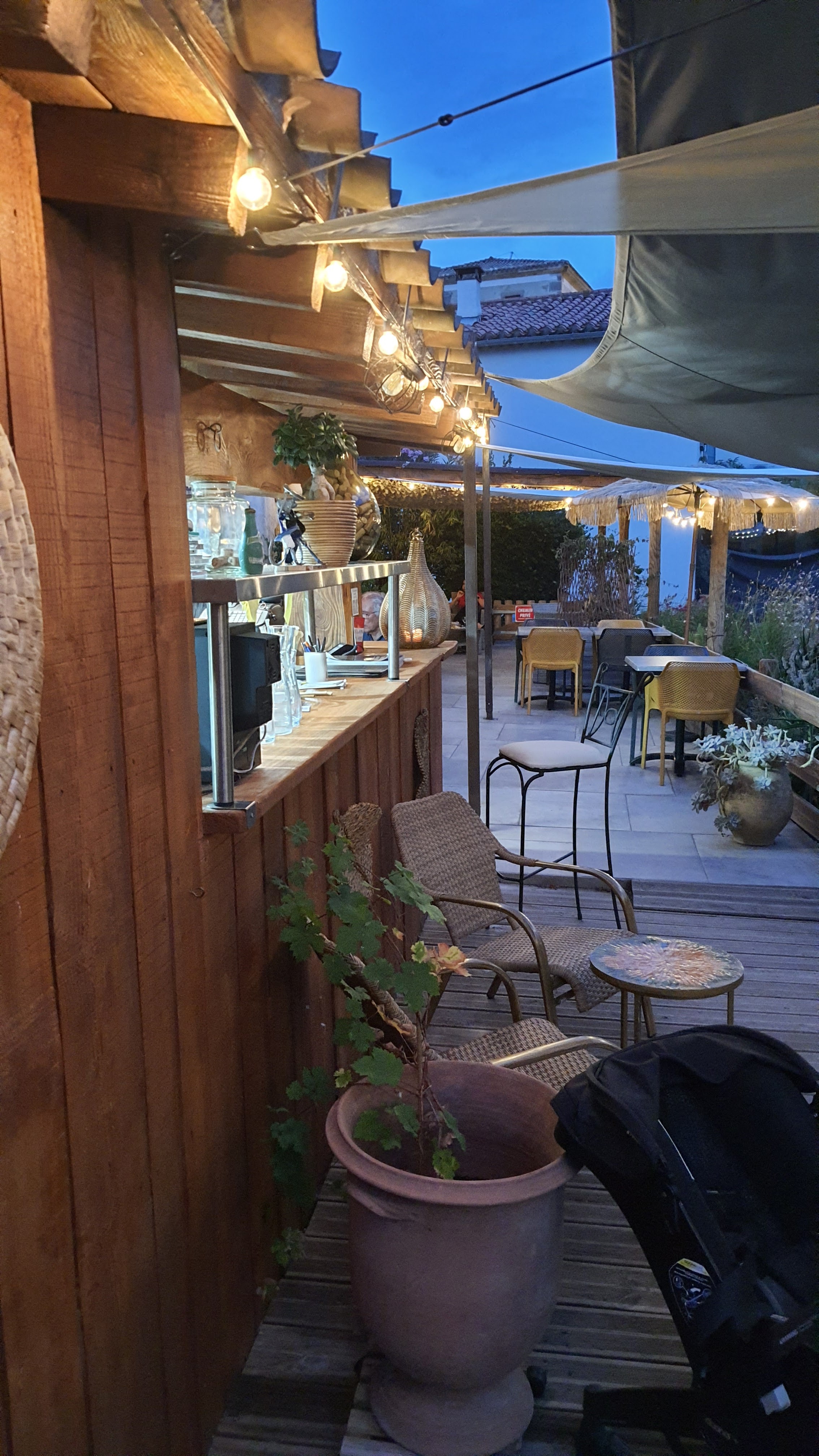 De passage en vacances, nous avons passé mon amie et moi une belle soirée dans cet établissement chaleureux tenus par un couple adorable qui nous ont expliquer avec sourire et décontraction leur parcours jusqu’à la création de ce petit cocoon de zenitude. Le cadre est charmant, agréable, la sangria blanche délicieuse et je recommande les rillettes de st jacques en ces temps caniculaires. Je me suis régalée et leur souhaite une bonne fin de saison.