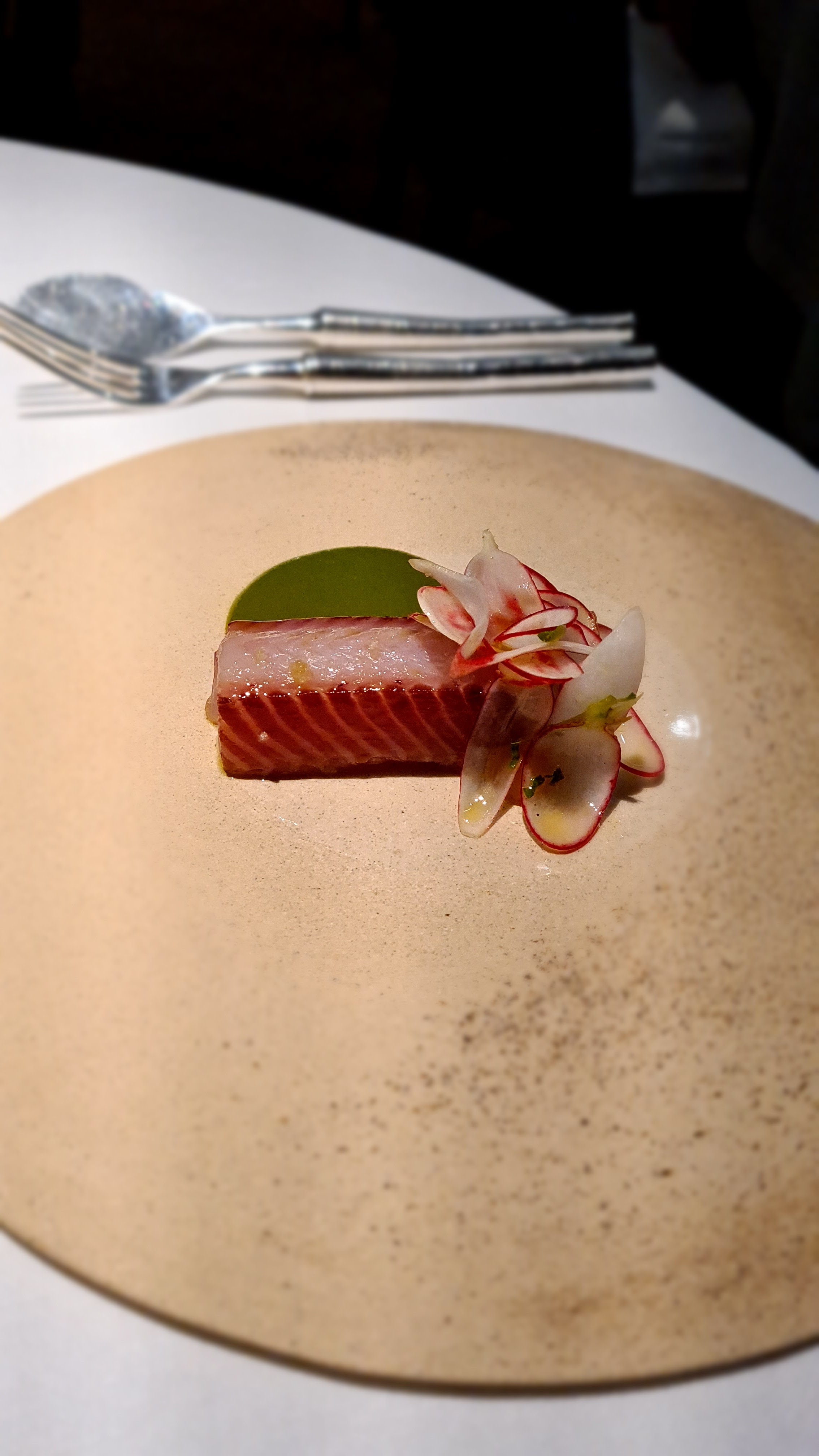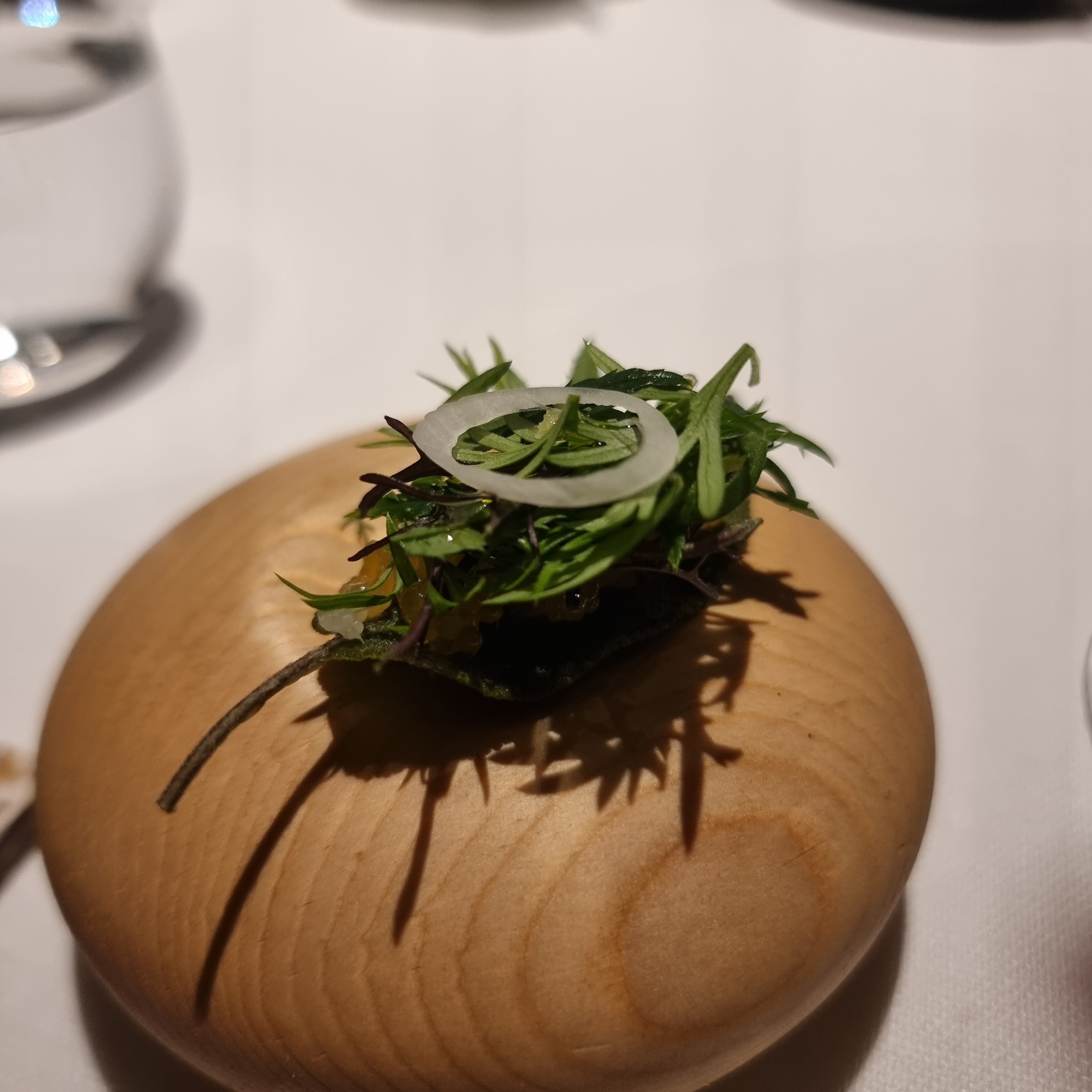 La gastronomie ne peut pas être meilleure que cela. Nourriture exceptionnelle et vins d'accompagnement bien sélectionnés si vous le souhaitez. Menu au choix de 5, 8 ou 10 plats (petites portions). Le menu est composé de poisson et végétarien et se concentre sur les produits locaux. Titulaire de 2 étoiles Michelin et je suppose que nous serons en route vers la troisième, c'est donc le bon moment pour entrer avant de les recevoir. Une qualité de service exceptionnelle en fait une expérience épique. Hautement recommandé. MISE À JOUR : 3 étoiles Michelin viennent d'être attribuées, bien méritées.