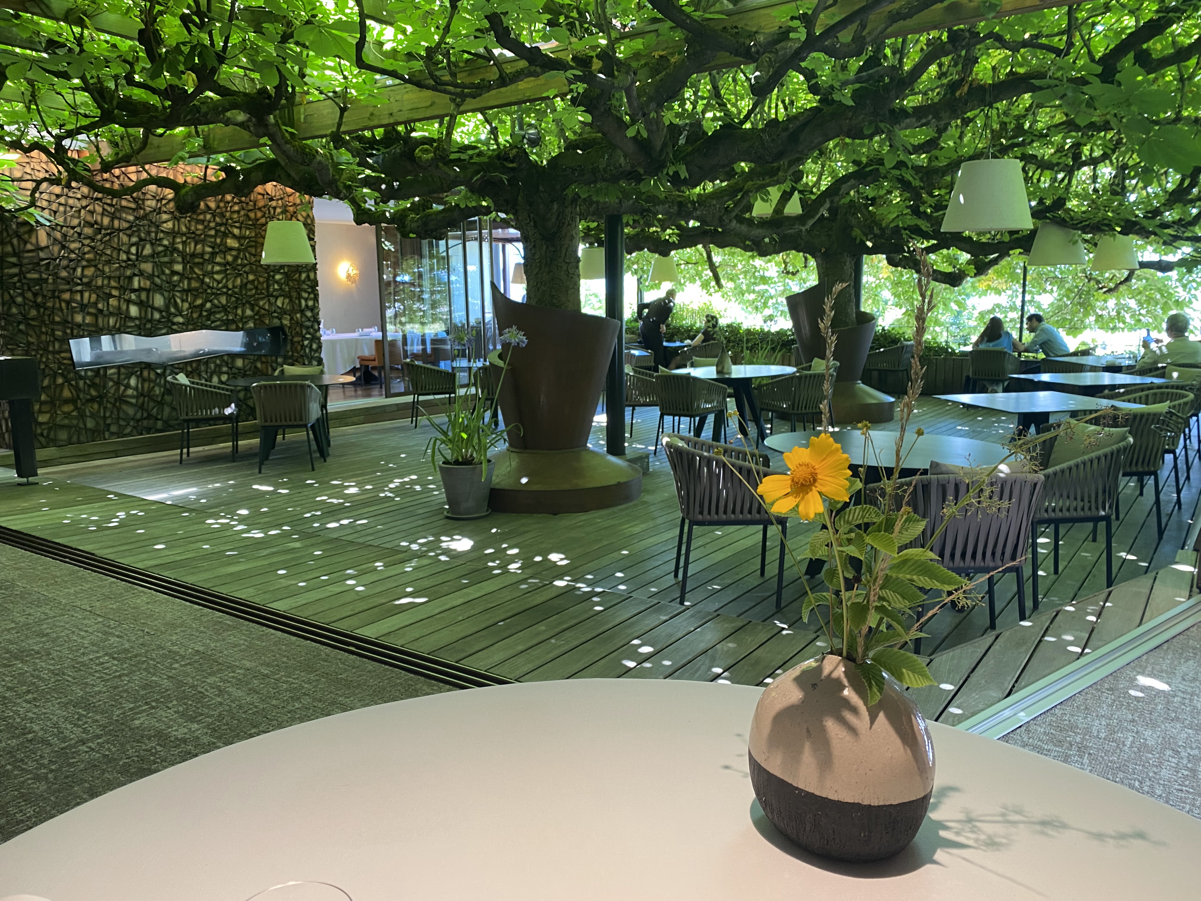 Superbe, superbe. Probablement le meilleur restaurant étoilé Michelin que nous ayons connu. C'était notre 4ème dîner et ça ne cesse de s'améliorer. Dîner hier soir près de l'arbre, service incroyable (très chic et discret). Belle nourriture et paysages. Le mieux c'est sans doute que pour un 3* Michelin, ce n'est pas ostentatoire, Bling-bling. Hautement recommandé.