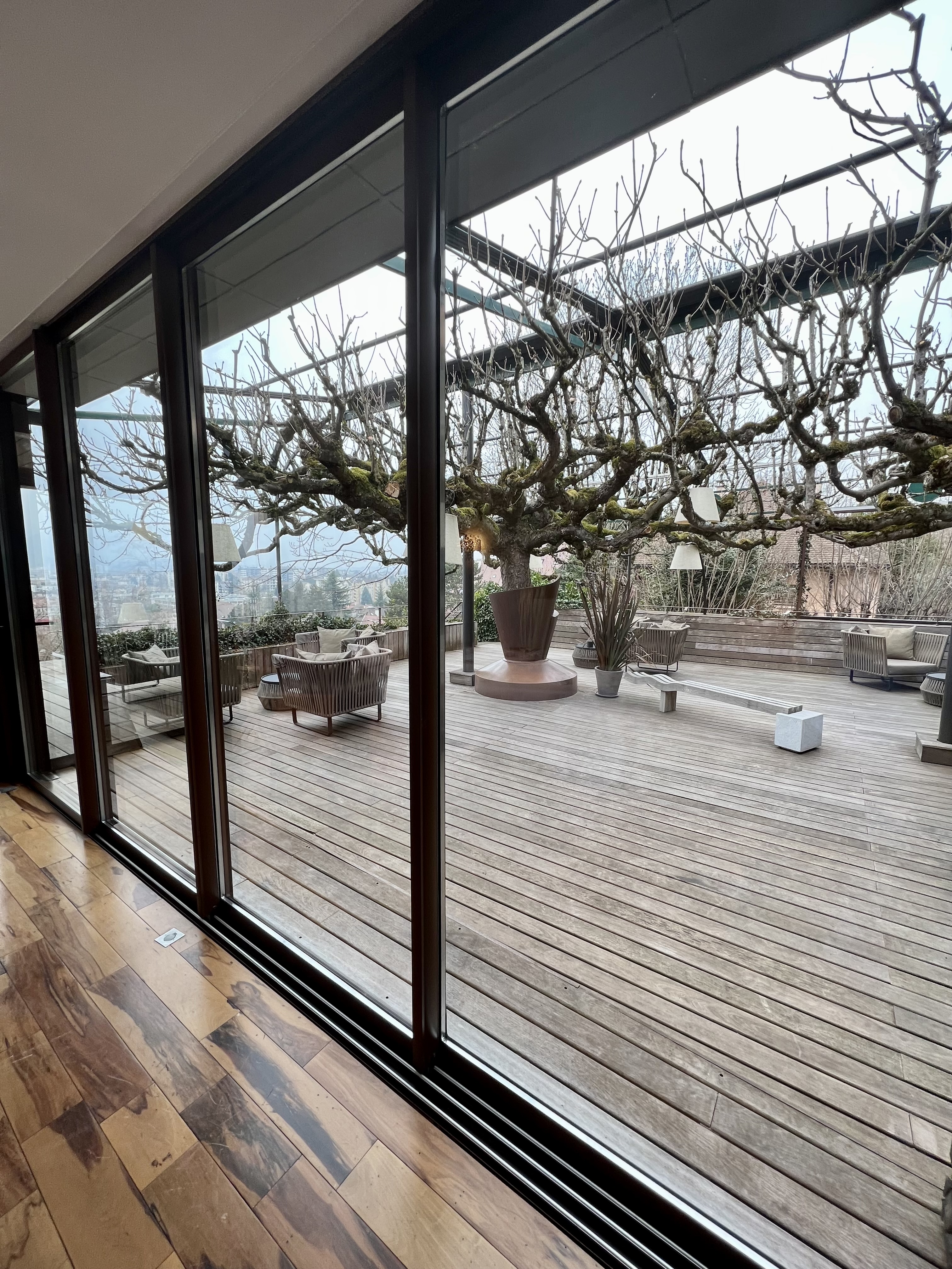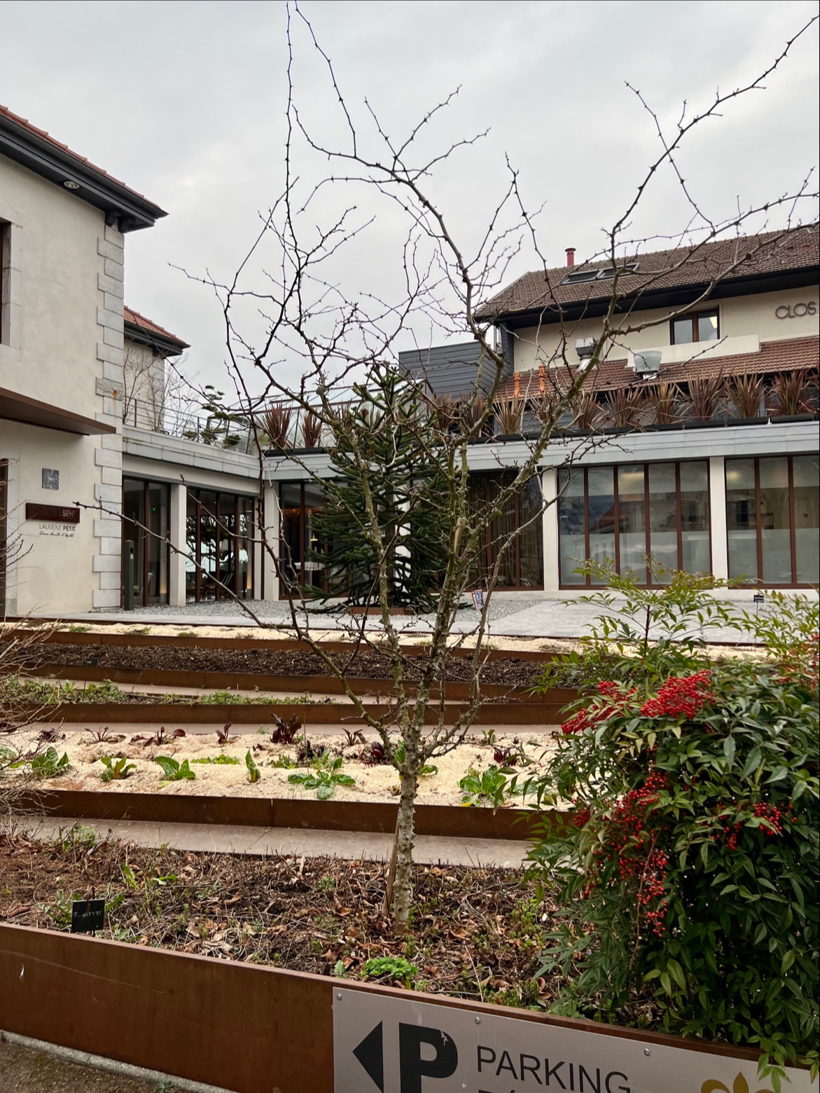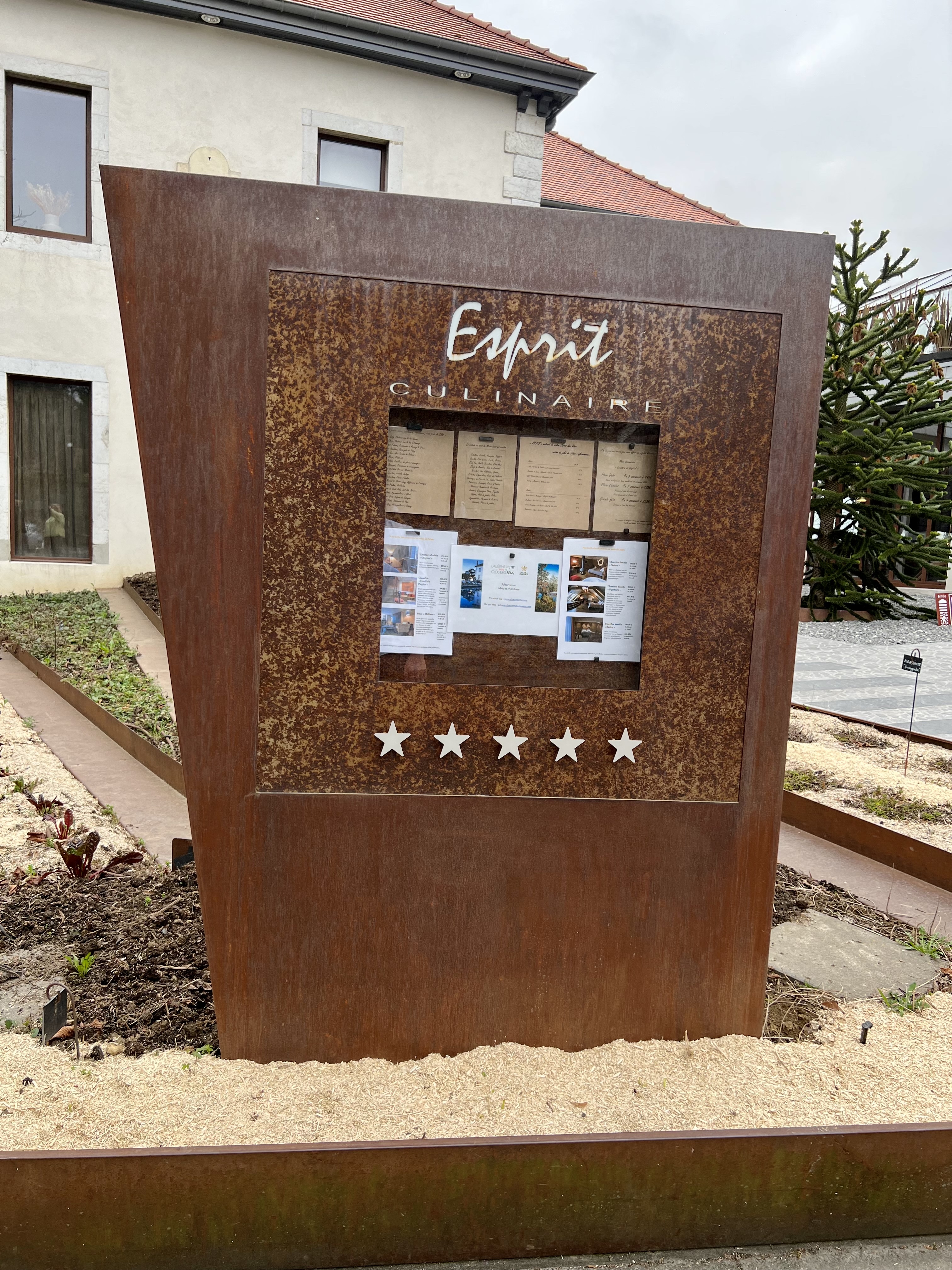 Concernant le restaurant : Assez déçu. Je n'ai pas envie de m'étendre mais je suis habituellement plutôt généreux avec les notes sur google. Pour être bref, le service et la qualité des plats étaient à mon sens un peu juste pour un établissement 3 étoiles. J'ai été particulièrement embêté par la gestion d'une erreur lors du service vis-à-vis d'intolérances alimentaires : Mon amie a une allergie sévère aux poissons crustacés, j'avais appelé à plusieurs reprises avant la réservation à ce propos. Allergie rappelée lors de la commande. Le premier amuse-bouche contenait du foie de poisson (si mes souvenirs sont bons).. Il ne s'est très heureusement rien passé mais je n'étais pas serein et me voyais déjà dans le Dauphiné Libéré ... ce d'autant que nous sommes restés seuls pendant bien 10 minutes après avoir relevé cette bourde... le temps de se demander s'il fallait appeler le SAMU -_- Le menu n'est pas très cher pour un 3 étoiles et reste pour moi le principal atout du restaurant. Je conclus souvent par à refaire mais ça ne sera pas le cas cette fois-ci.