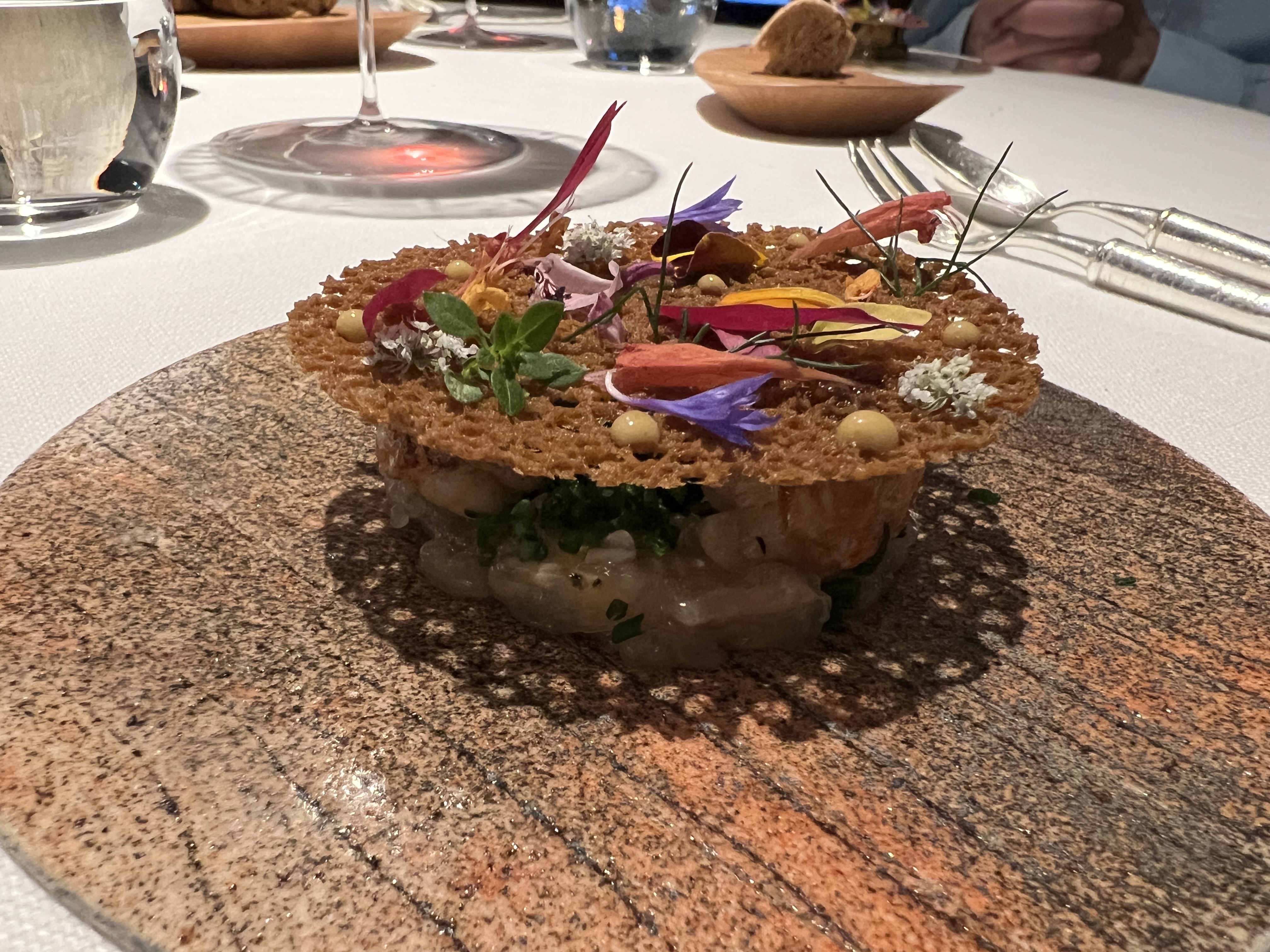 Un bon moment passé, le service du personnel très bien, attentionné mais pas trop juste ce qu'il faut. Le repas menu en 10 services peut être un peu trop pour ma part le soir j'aurai plus apprécié au déjeuner. Des découvertes mon palet s'est régalé et mes yeux ont été ravie. A une autre fois j'espère pour d'autres merveilles.