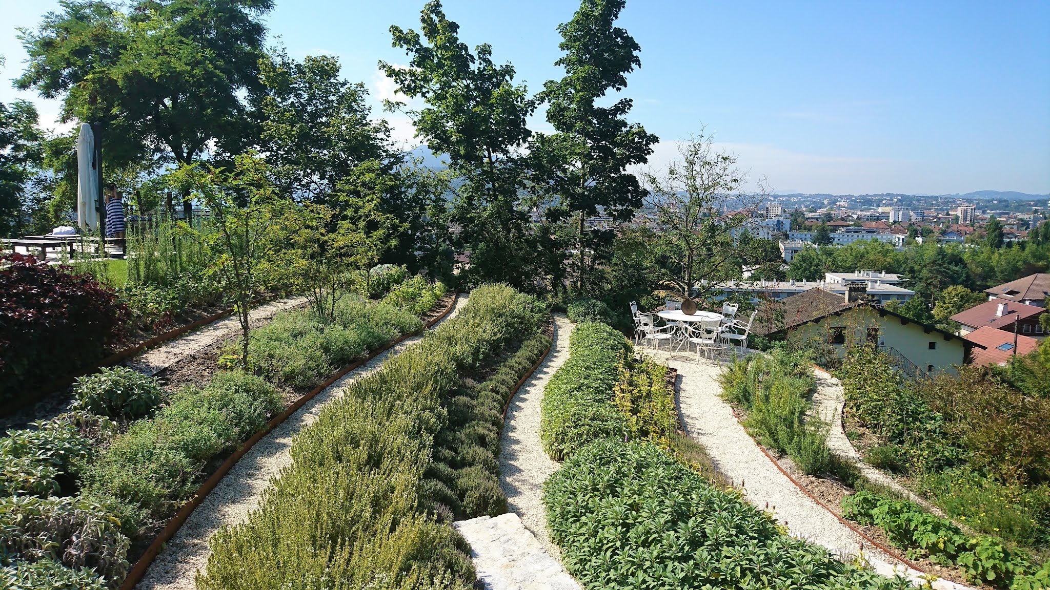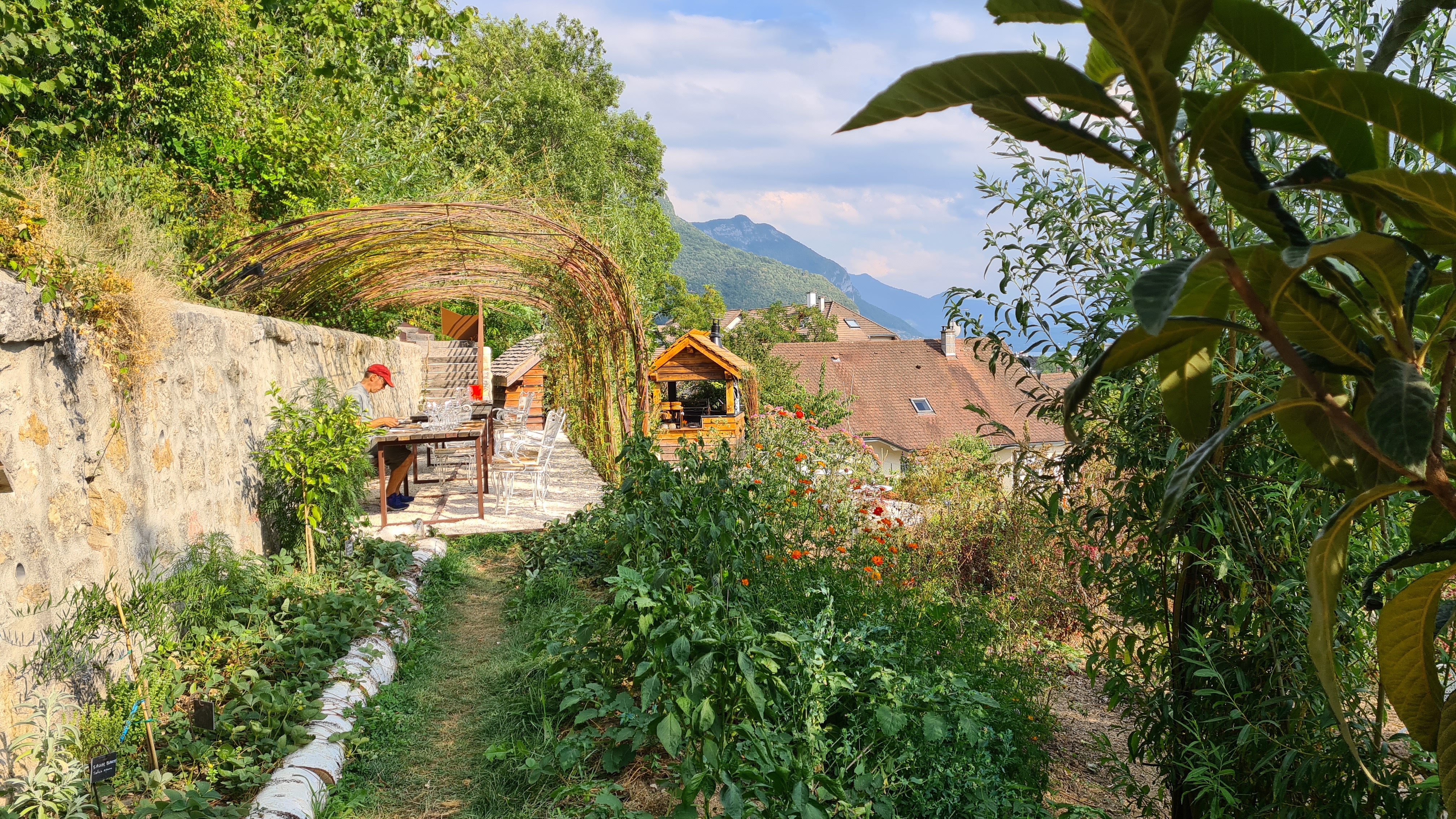 Magnifique restaurant surplombant Annecy et situé dans une maison de maître avec un hôtel très joli. Le restaurant travaille une cuisine de saison avec des produits végétaux et lacustres trouvé à maximum 100 km de là. Donc c'est local de chez local. Et ne vous attendez pas à y voir du fois gras ou du boeuf... y en a pas dans le menu qui évolue au gré des jours sur la variation végétal et lacustre. La salle de repas ouvre sur une terrasse immense recouverte d'une pergola naturelle : deux immenses platanes (?) font office de toit végétal. Le lieu absolument divin. Il est aussi possible de se promener dans le jardin et de voir les nombreuses plantes qui ont servi à la confection du repas. Découvertes garanties Je recommande de réserver des mois à l'avance et de demander la table qui donne sur les cuisines : un régal pour les yeux. L'attention du personnel, le fait qu'une chef vient expliquer chaque plat et le cadre idyllique en font une expérience superbe ! A recommander pour les amoureux de cuisine différente, pointilleuse et goûtue