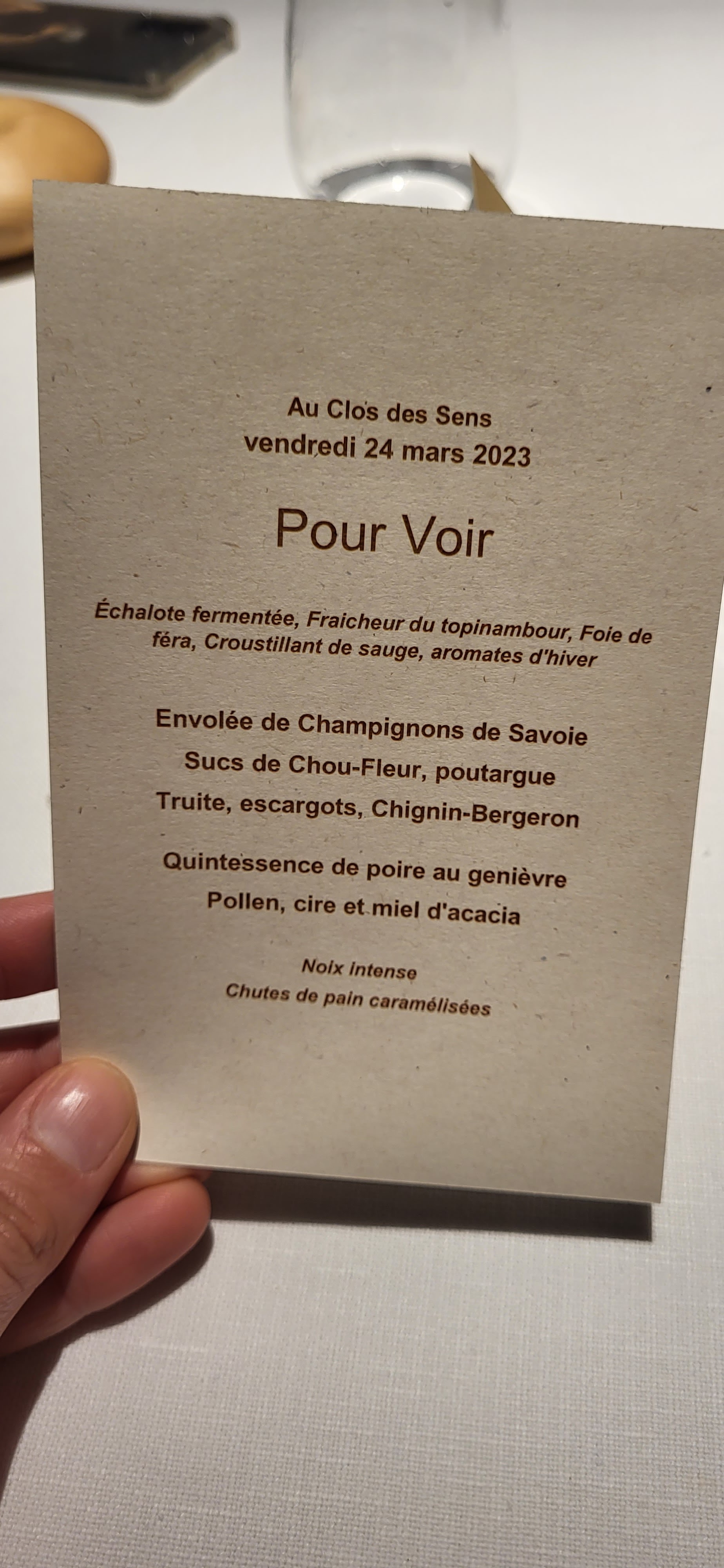 Nous avons eu la chance de découvrir le menu Pour voir offert par notre famille. Ce fut un enchantement de saveurs , de raffinements Et de surprises... Le restaurant porte tres bien son nom. Bravo au chef et à toute son équipe