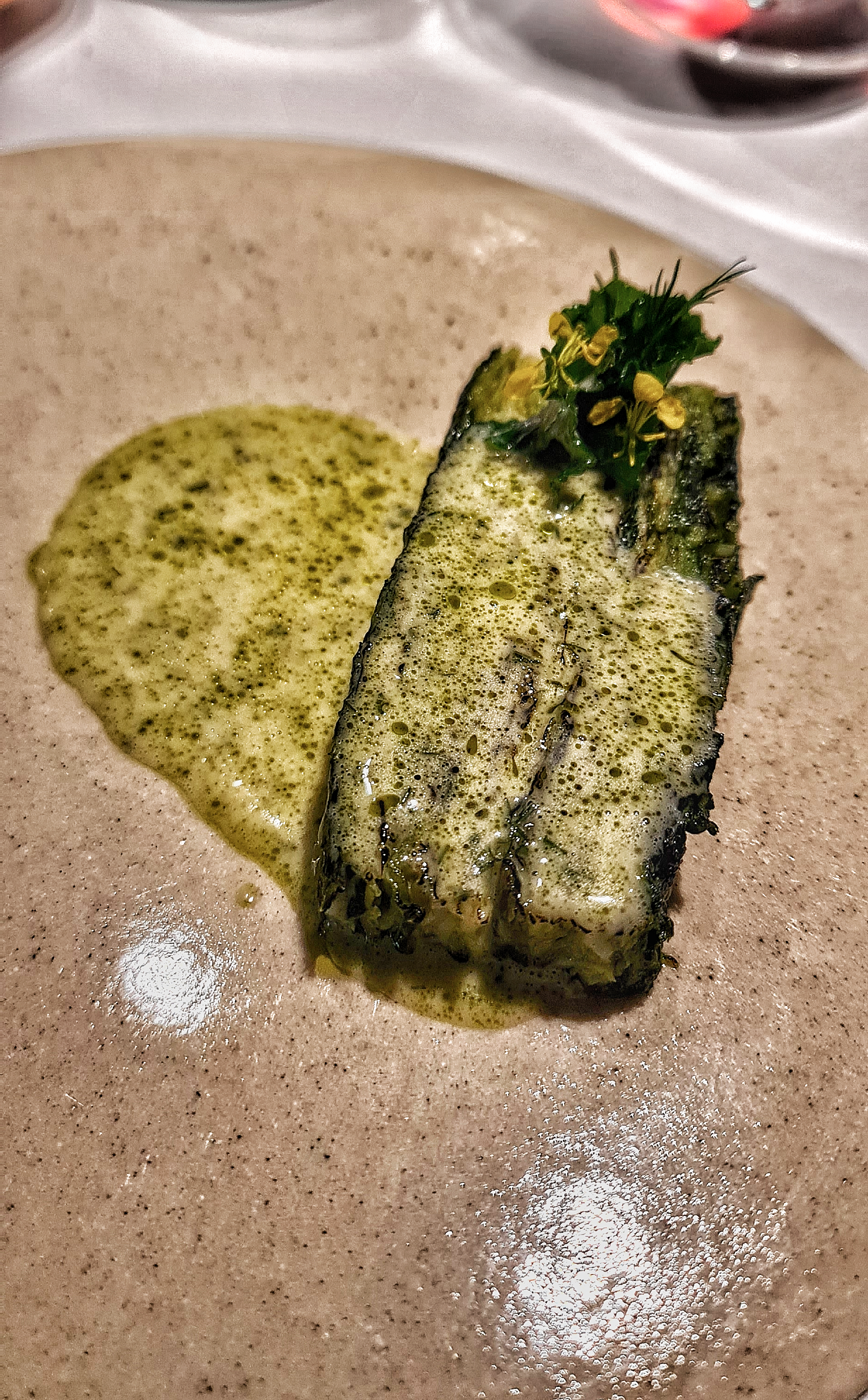 Excellent service et nourriture incroyable ; frais et surprenant. Tous les ingrédients proviennent de sources locales et typiques de la région. Les vins étaient décevants mais cela pourrait être dû au type d'accord requis (vins blancs légers, un seul rouge clair qui était ok). Ce que l'on attend d'un 3* Michelin avec en plus l'intérêt de découvrir les produits locaux.