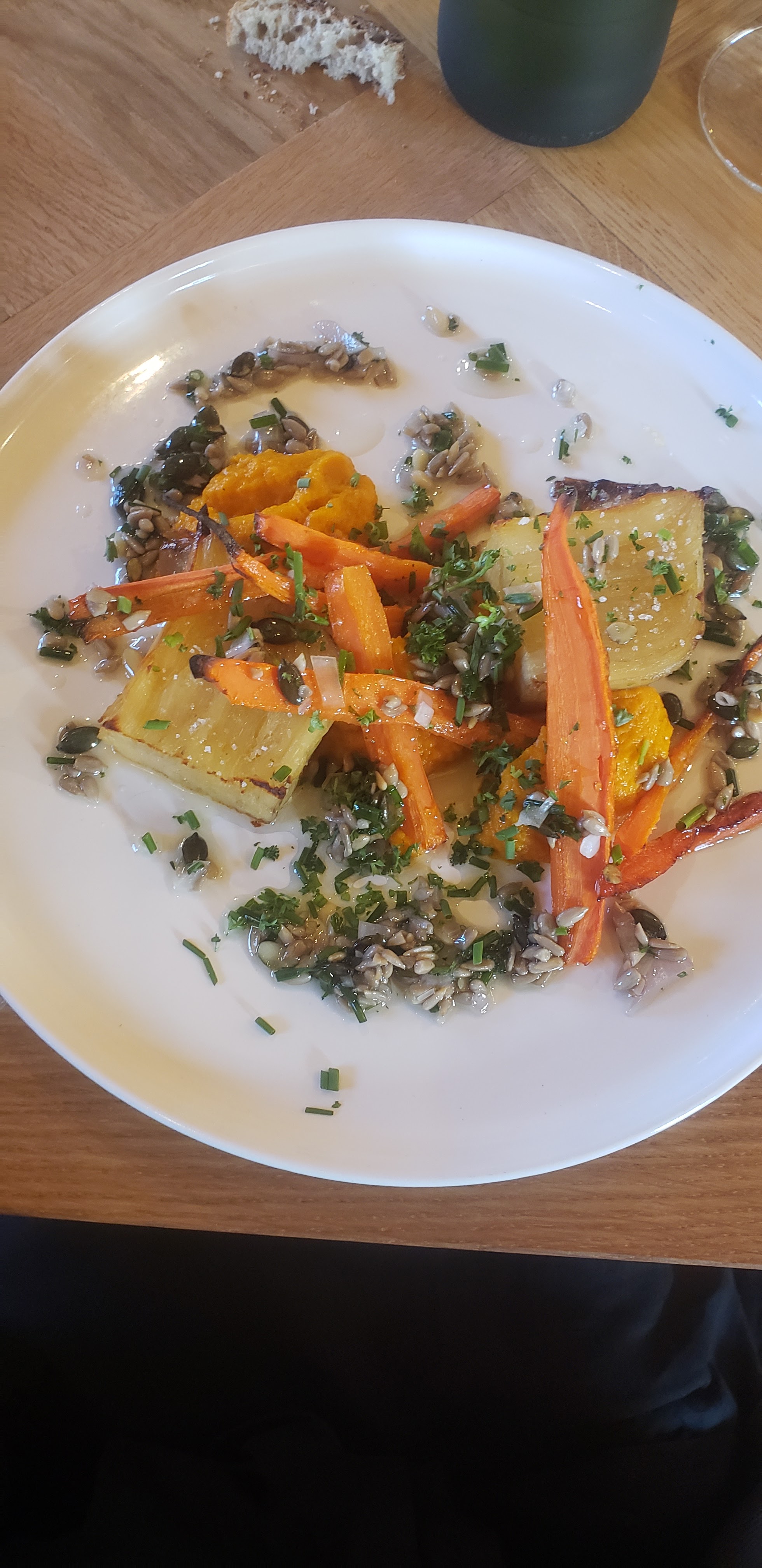 Restaurant à 2 le soir. Menu dégustation avec option vegetarienne très bonne, merci au personnel arrangeant. Bonne cuisine, bon vin, tout était nickel !