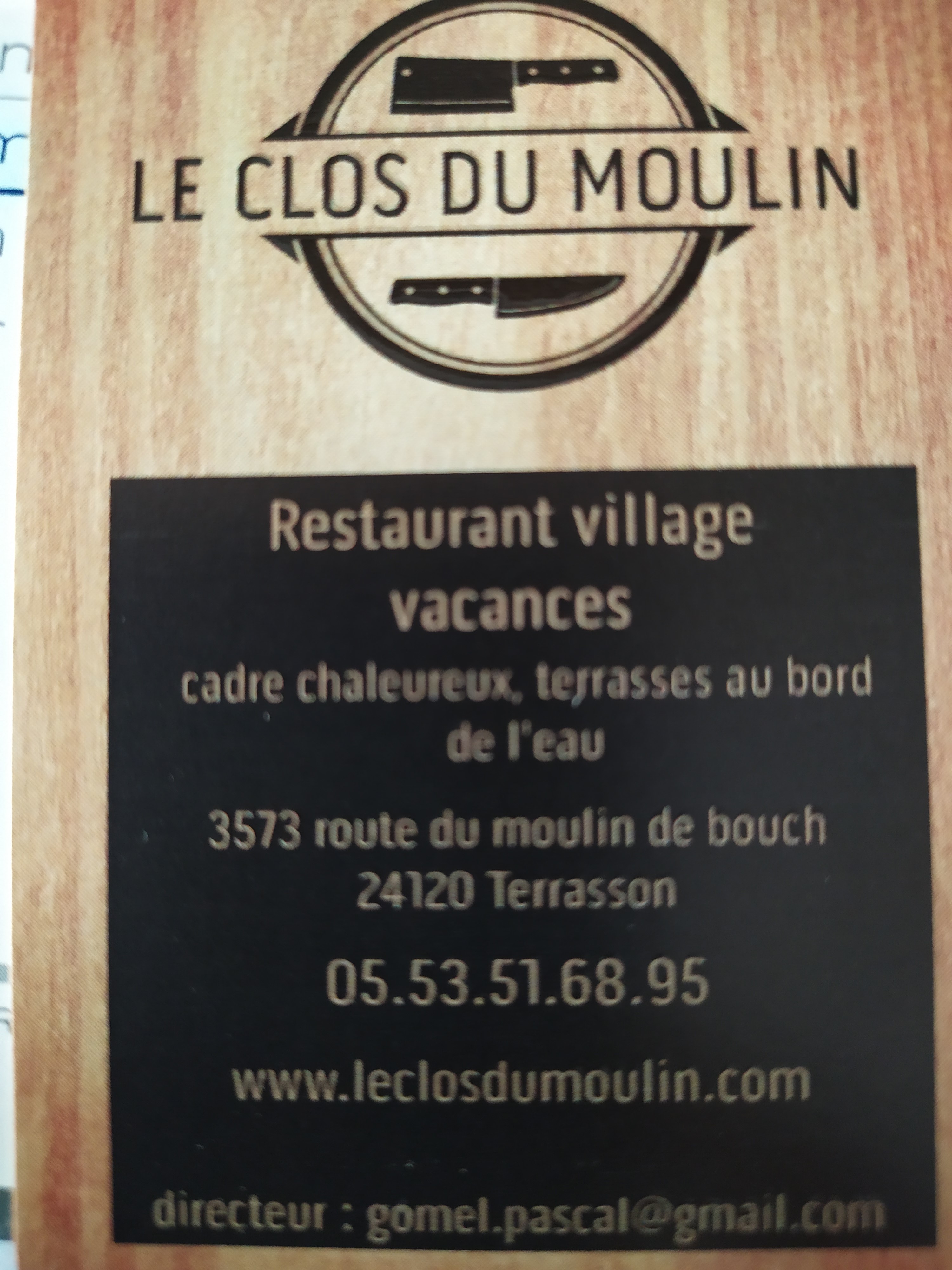 Voici toutes les informations sur le Restaurant LE CLOS DU MOULIN village vacances Dordogne qui ce trouve au Rte du Moulin de Bouch, 24120 Terrasson-Lavilledieu (24). Sur cette fiche vous trouverez les photos, l'adresse, les horaires d'ouverture, le numero de téléphone et les avis clients.Vous pouvez églement rédiger un avis si vous le souhaitez en bas de page.
