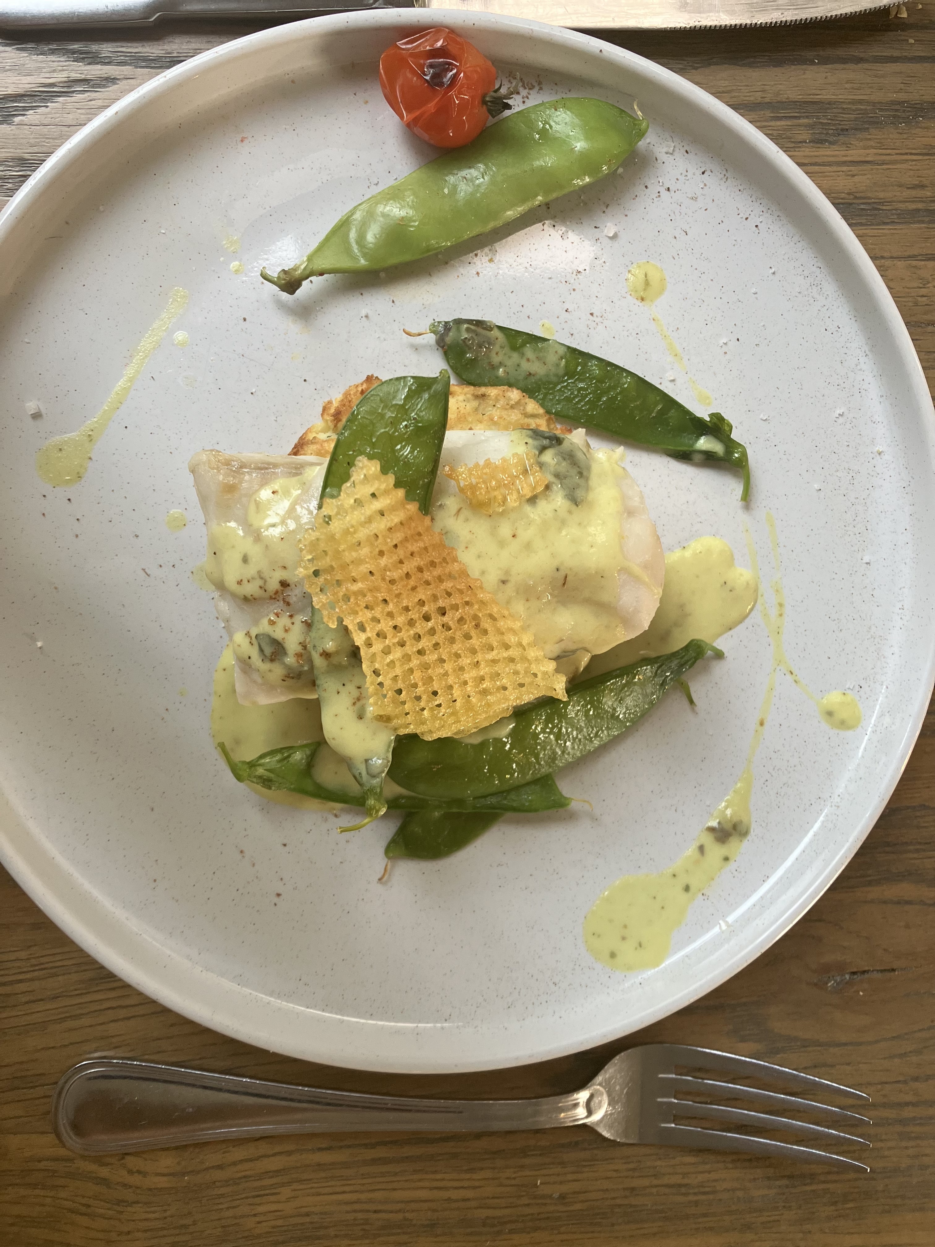 Nous avons dîné un mercredi soir. Le restaurant est décoré avec goût aux couleurs actuelles, le lieu est bien tenu, joli environnement extérieur également, accueil chaleureux, personnel sympathique, les prix sont corrects. Il est dommage toutefois que les plats ne soient pas à la hauteur ! L'assaisonnement, la cuisson du poisson et des légumes (congelés?), saveur des Ingrédients... Quelques suggestions de pistes de progrès qu'il serait important d'apporter au niveau de la préparation, afin de fidéliser la clientèle locale, notamment🤗