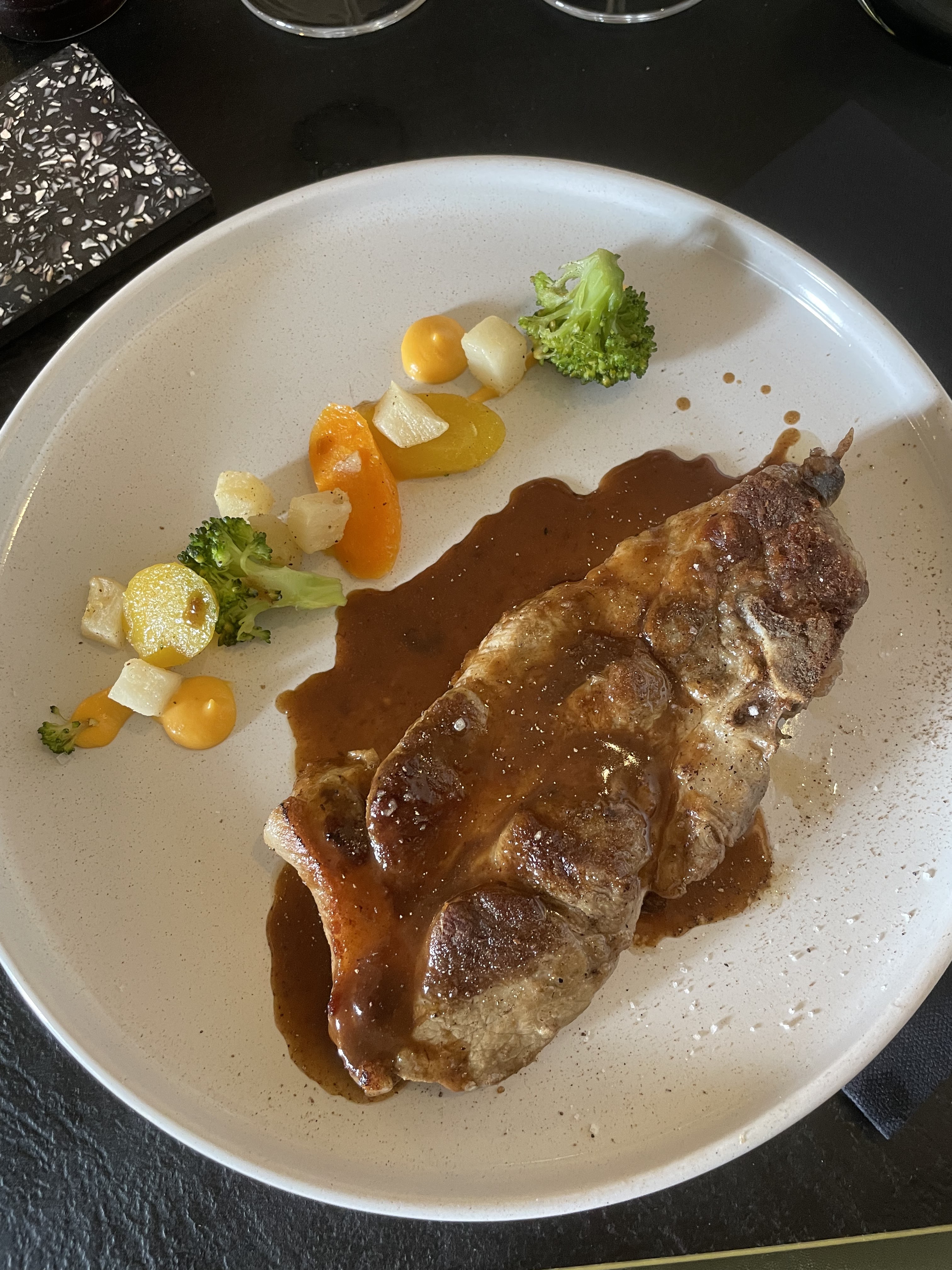 Franchement top, que ce soit l’hôtel, qui mériterait 4 étoiles, ou le restaurant, qui lui mériterait une « fourchette » au Michelin. C’est franchement bon, et maison. Merci le chef, cela fait plaisir de bien manger en déplacement 😉