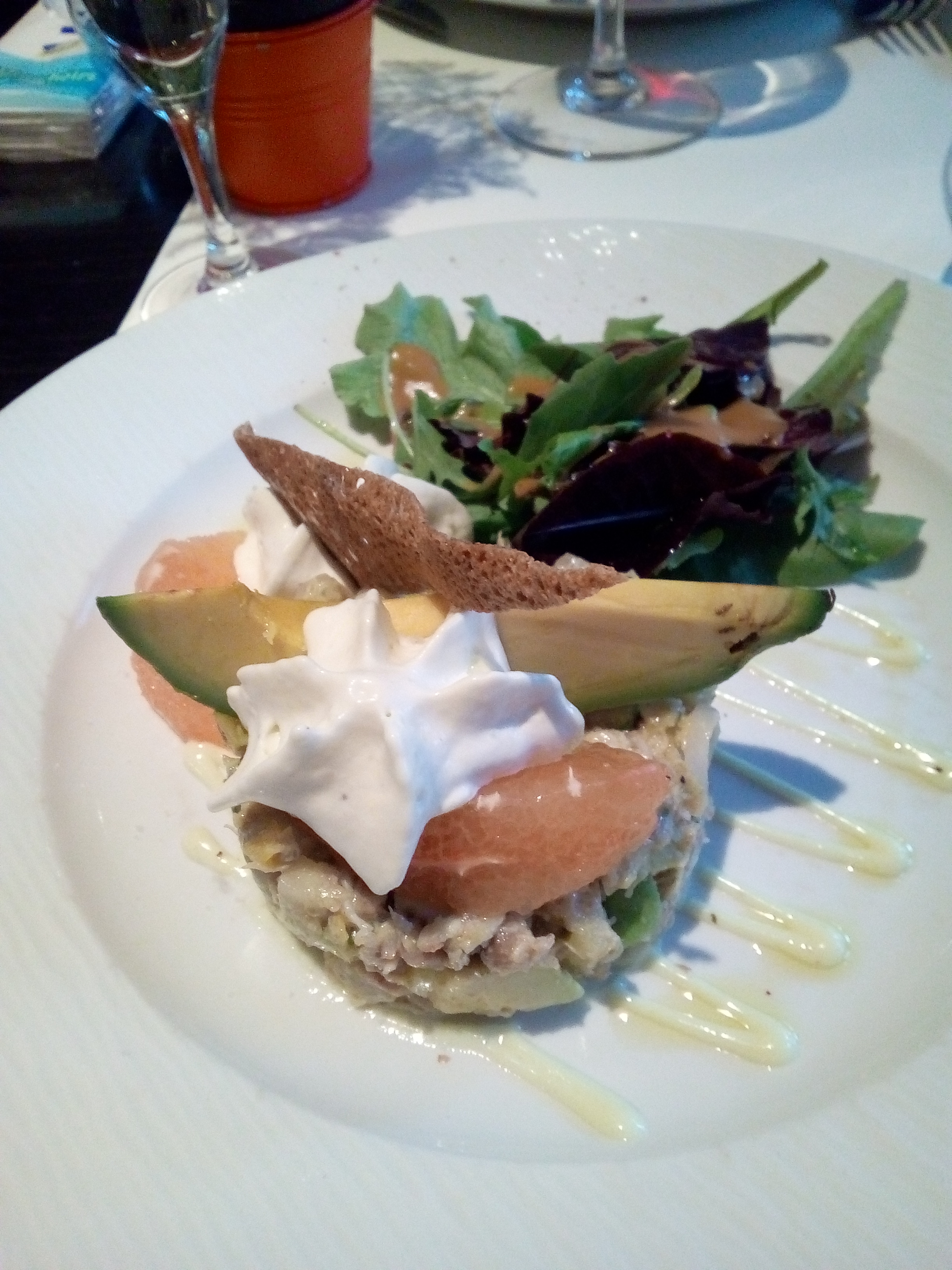 Repas du midi. Simple mais bon ! Beaucoup de saveurs dans les plats. Le plat principal peut être un peu juste en accompagnement mais sur tout le repas c'est bien ! Côte de Blaye blanc excellent ! Je conseille !