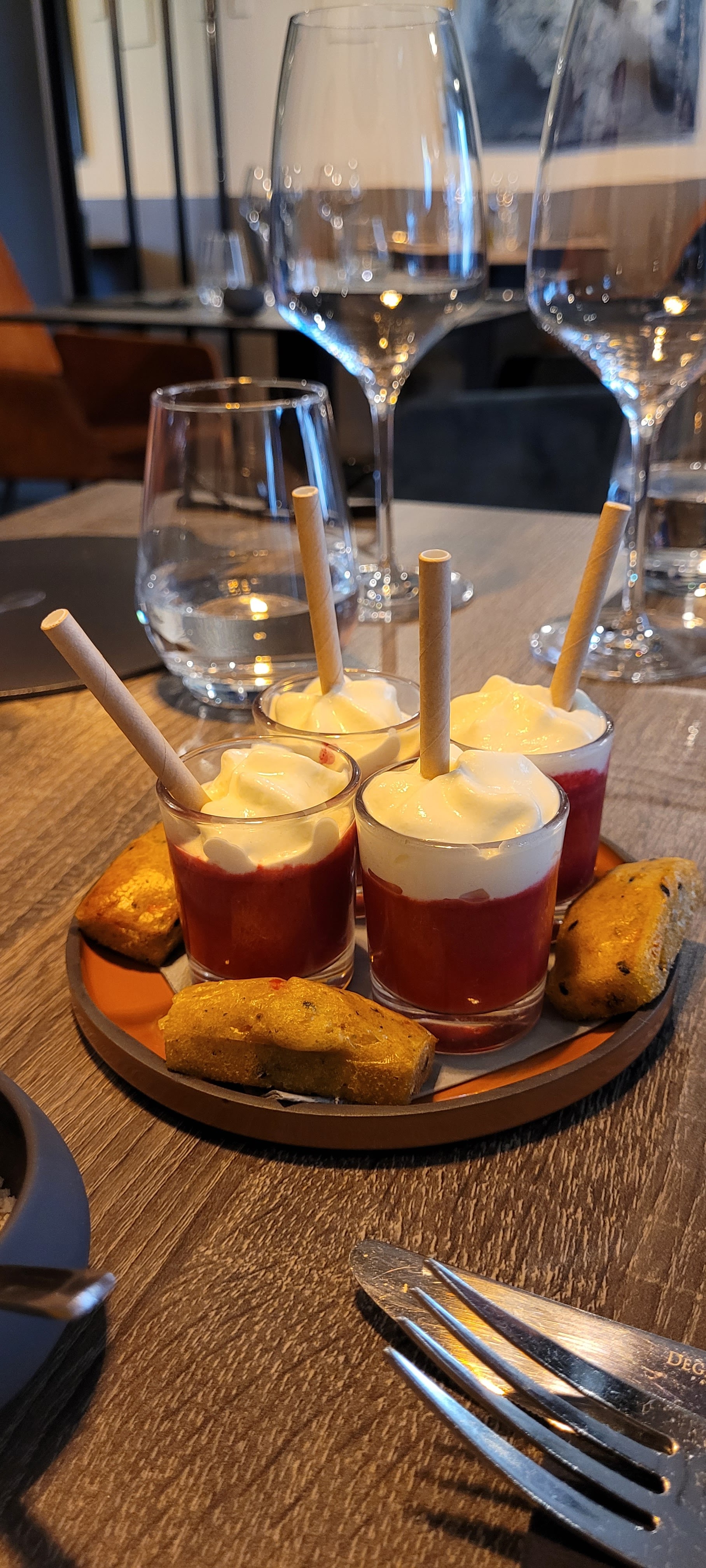 Lieu très épuré, calme, nous avons été bien servi malgré le festival. La brigade au cuisine est au top belle présentation dans l assiette on mange d abord avec les yeux et on déguste ensuite , les serveuses agréables
