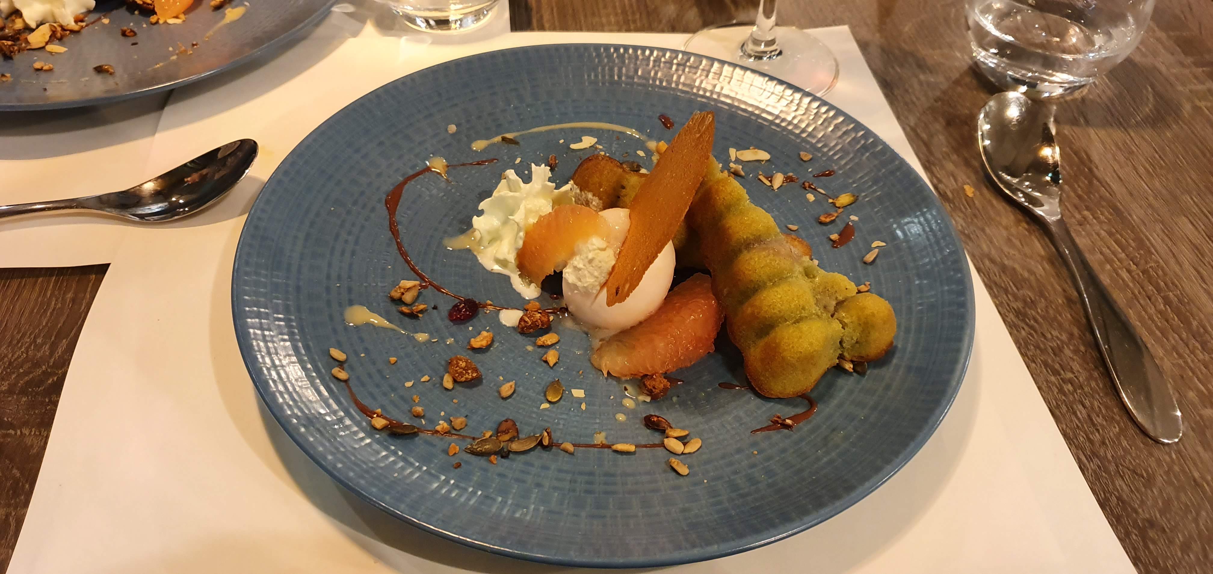 Bon repas mais aurions voulu 2 entrées et 2 desserts au choix, belle présentation, savoureux et gourmand, bon accueil, très sympathique.