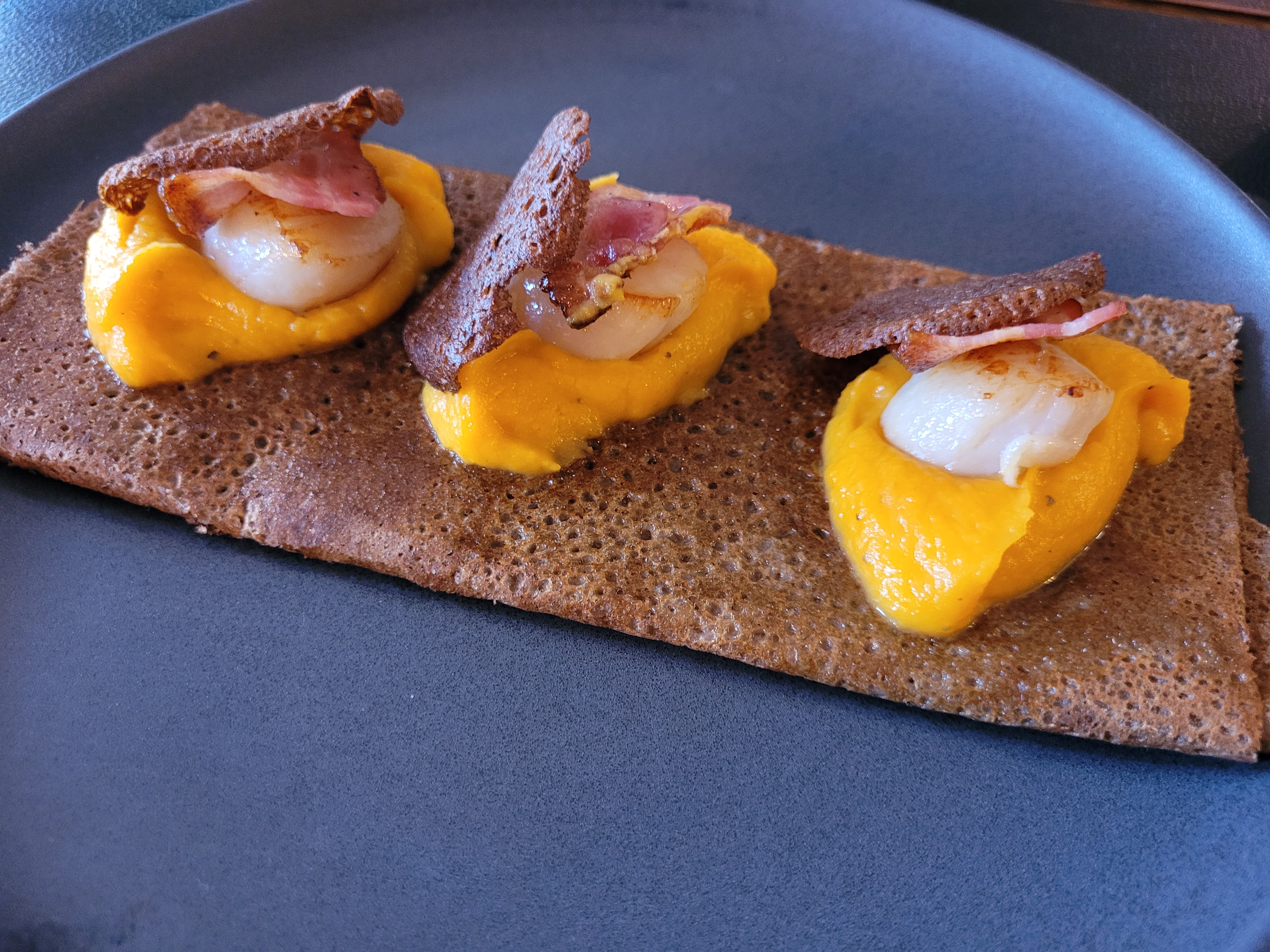 Accueil et service au top, le tout dans un aménagement intérieur effectué avec goût. Concernant les galettes, cela ne reste que mon goût personnel mais j'aurais aimé un peu plus de cuisson sur la 2ème face de la galette. Au niveau de l'andouille, ce serait un peu plus de mettre de l'andouille de Guémené car celle choisit était poivrée ce qui a cassé le goût à mon sens. Pour les crêpes froment, vu que j'aime bien les surprises, je suis plus adepte d'avoir les ingrédients dans la crêpe et donc de découvrir la saveur générale à la première bouchée. Aussi voir des frites servies dans une crêperie m'interpelle toujours un peu mais peut être est-ce une vision arriériste. Dans l'ensemble, le niveau de professionnalisme de l'établissement est forcément notable, ambiance, choix des produits (locaux) énoncés, qualité du site internet (réservation en ligne) et surtout un niveau de service excellent avec une équipe dynamique.