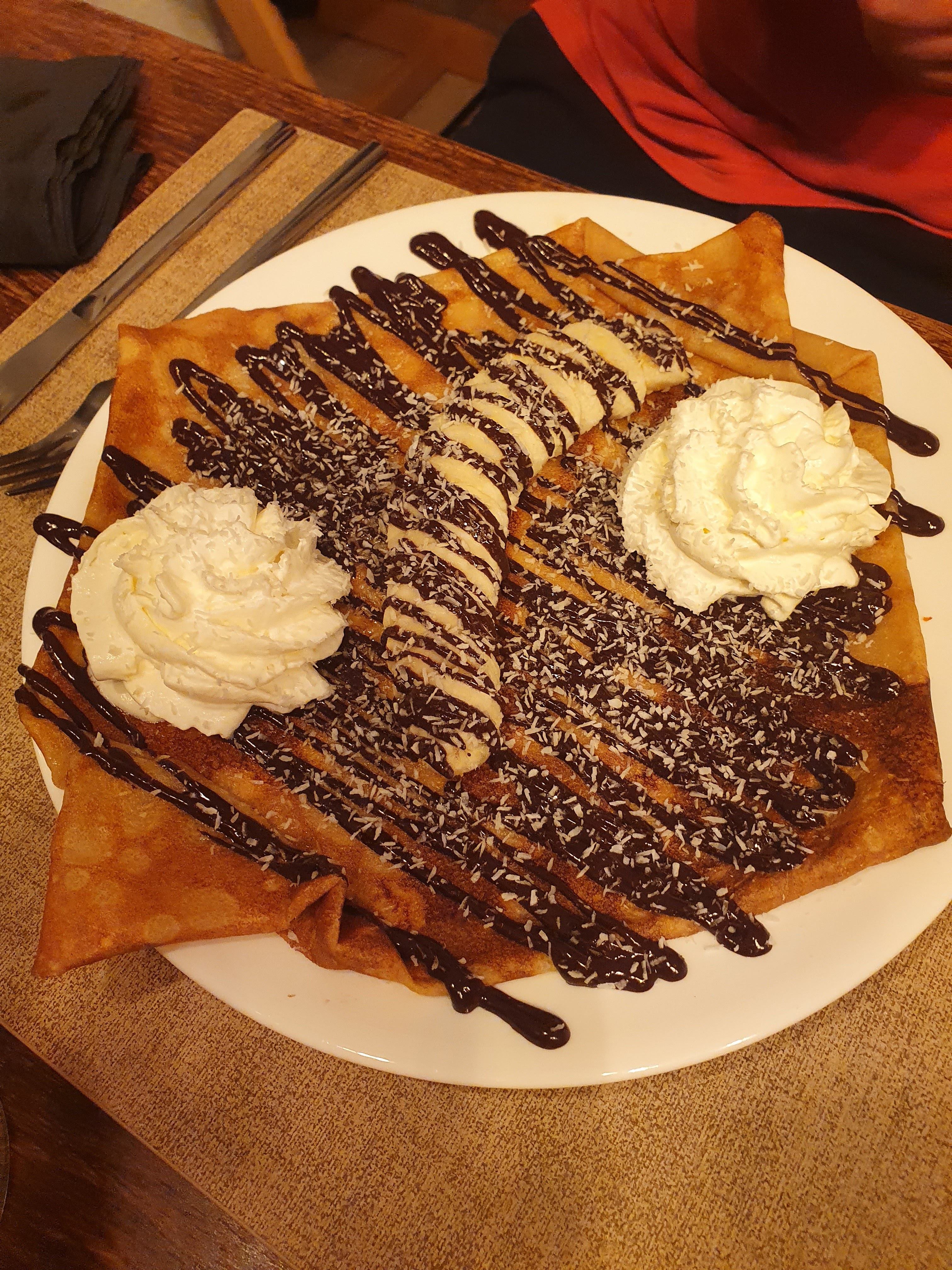 accueil et cadre chaleureux, crêpes excellente, et une ambiance calme. Je vous recommande cette crêperies les yeux fermés.En revanche ils mettent un peu trop de chantilly mais vraiment trop.
