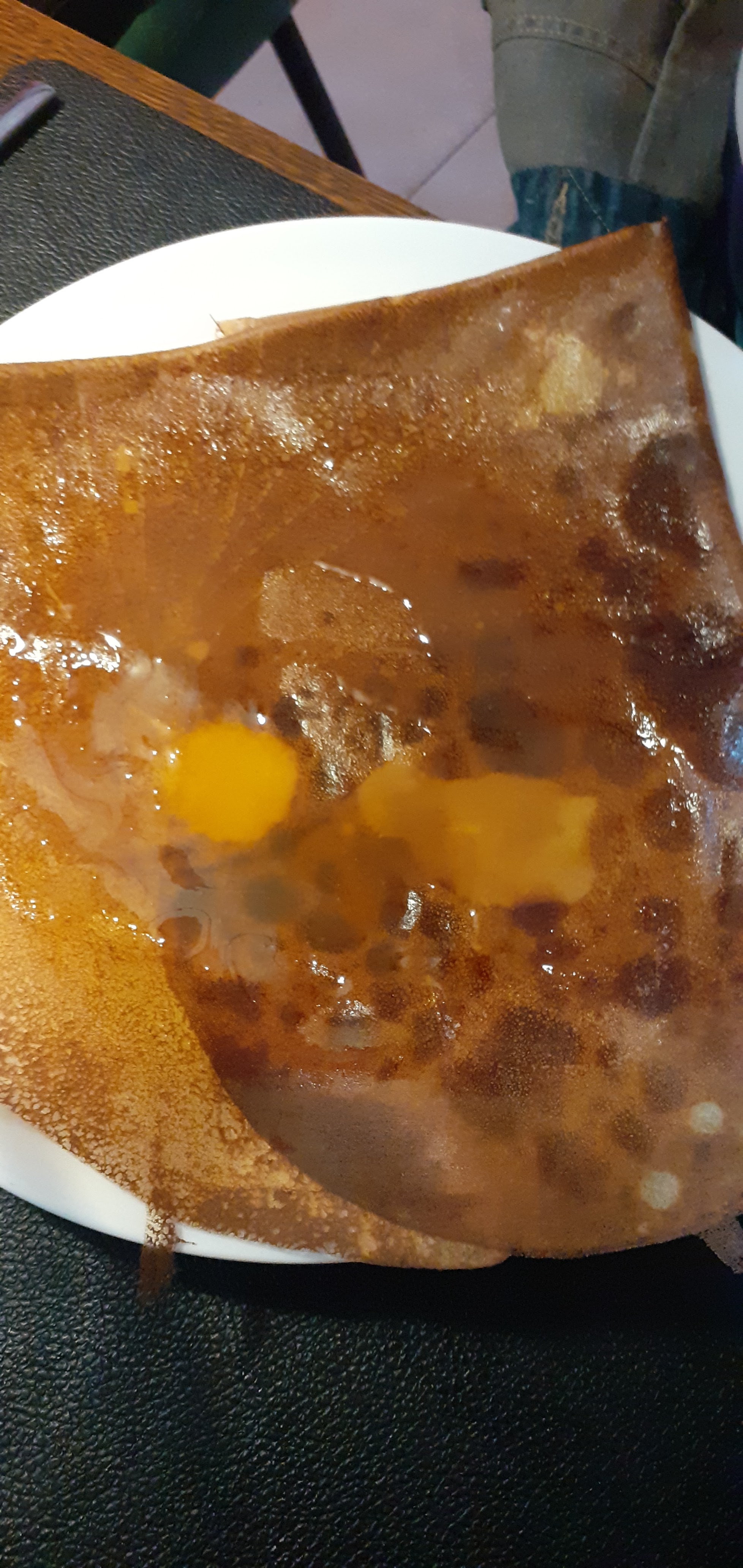 La galette était trop cuite et peu garnie, dommage. Inhabituel pour la cuisson apparemment. Je recommande les samoussas en dessert !