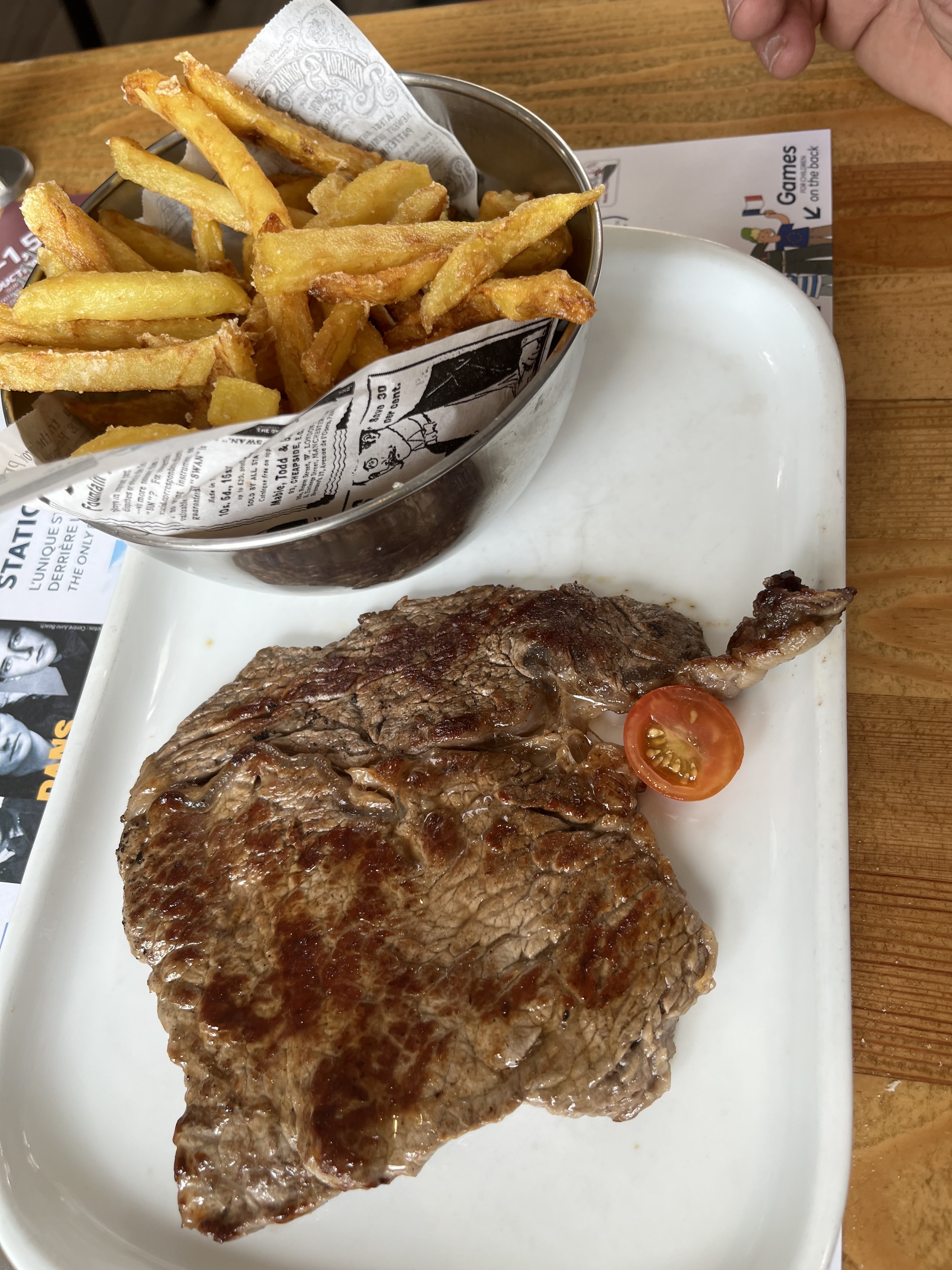 Franchement pas terrible juste mangé très déçu plateau renversé sur les pieds de mon mari !!! On nous apporte nos plats les frites par terre la serveuse dit à mon mari levé les pieds d un ton pour balayer les frites sous sa chaise du coup nous avons écourté notre repas qui dit en passant n était pas terrible et pour couronner le tous elle n a pas su nous rendre la monnaie 38,80 sur 50