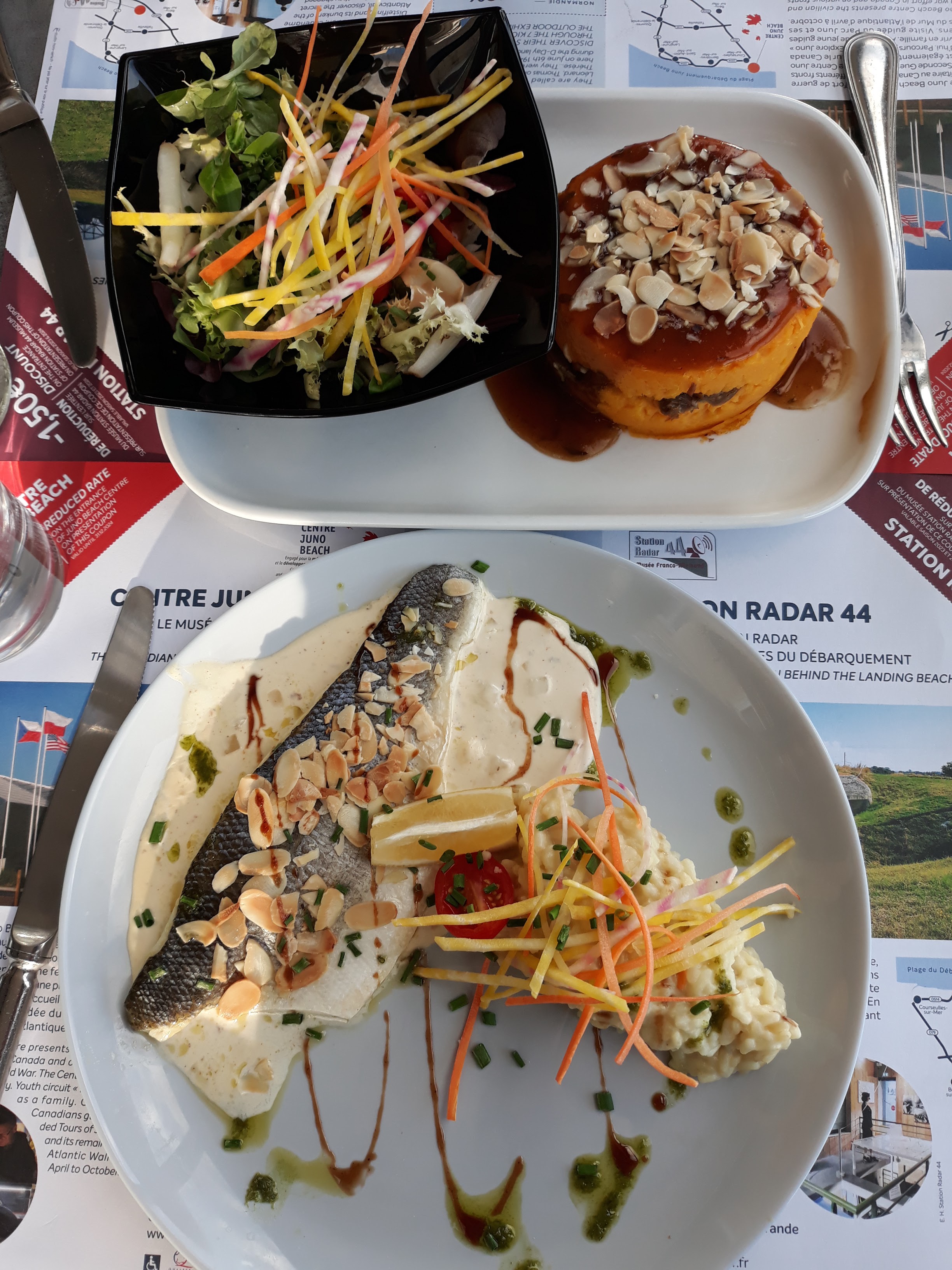 Première partie du match avantage pour les basques: les Normands proposent un gravlax de saumon qui nous semble un simple saumon fumé (et pas un saumon mariné comme annoncé) avec la crème fraîche... trois petites tranches. Déception: tout le match va se jouer comme ça?. Mais... la deuxième partie du match démarre et les Normands prennent avantage avec un but dans la minute cinq: un excellent filet de bar, copieux, savoureux et bien présenté, comme les autres plats. Les basques se relaxent et les Normands profitent pour faire un deuxième but (le but de la victoire !) avec le bon dessert: tarte tatin, crèmes brûlées et mousse au chocolat délicieux... Joli match! Ça vaut la peine de le jouer. Je recommande.