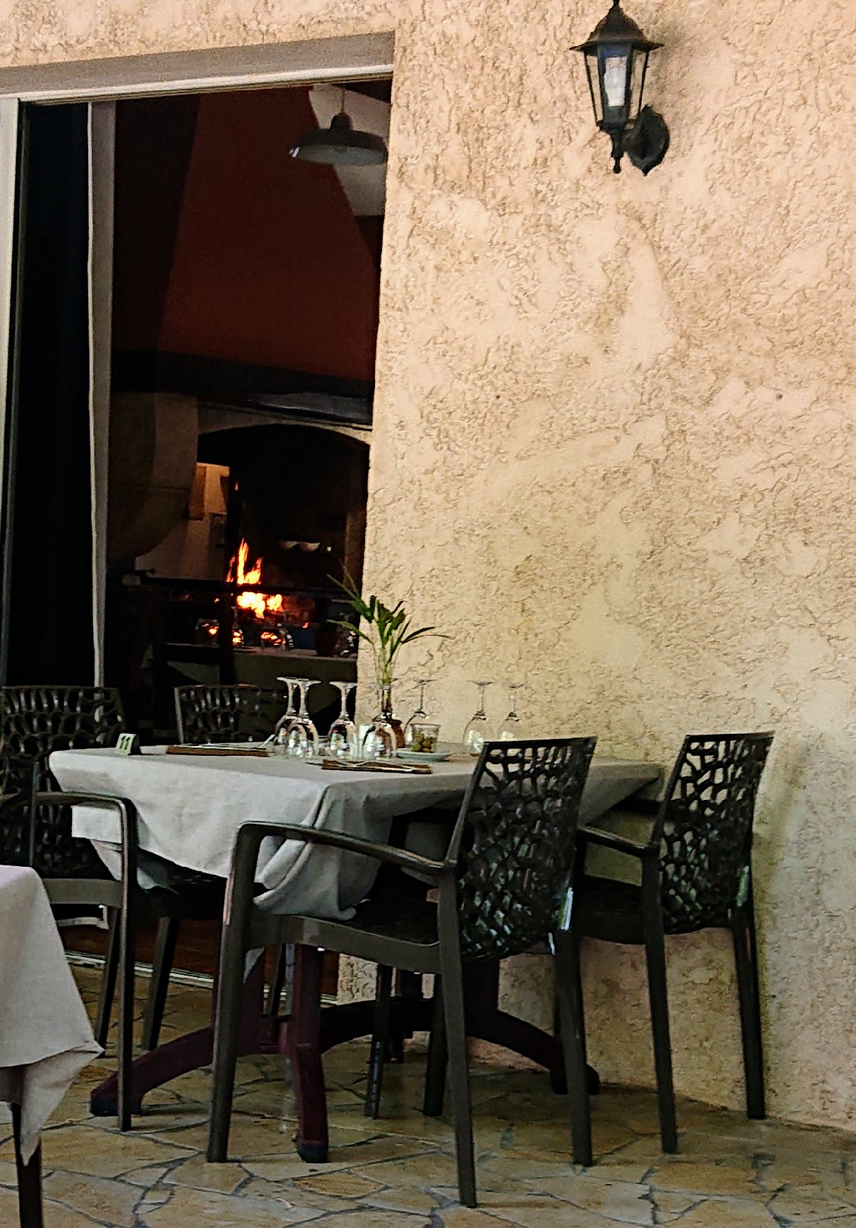 Très bonne cuisine au feu de bois mais un peu cher si on prend à la carte
