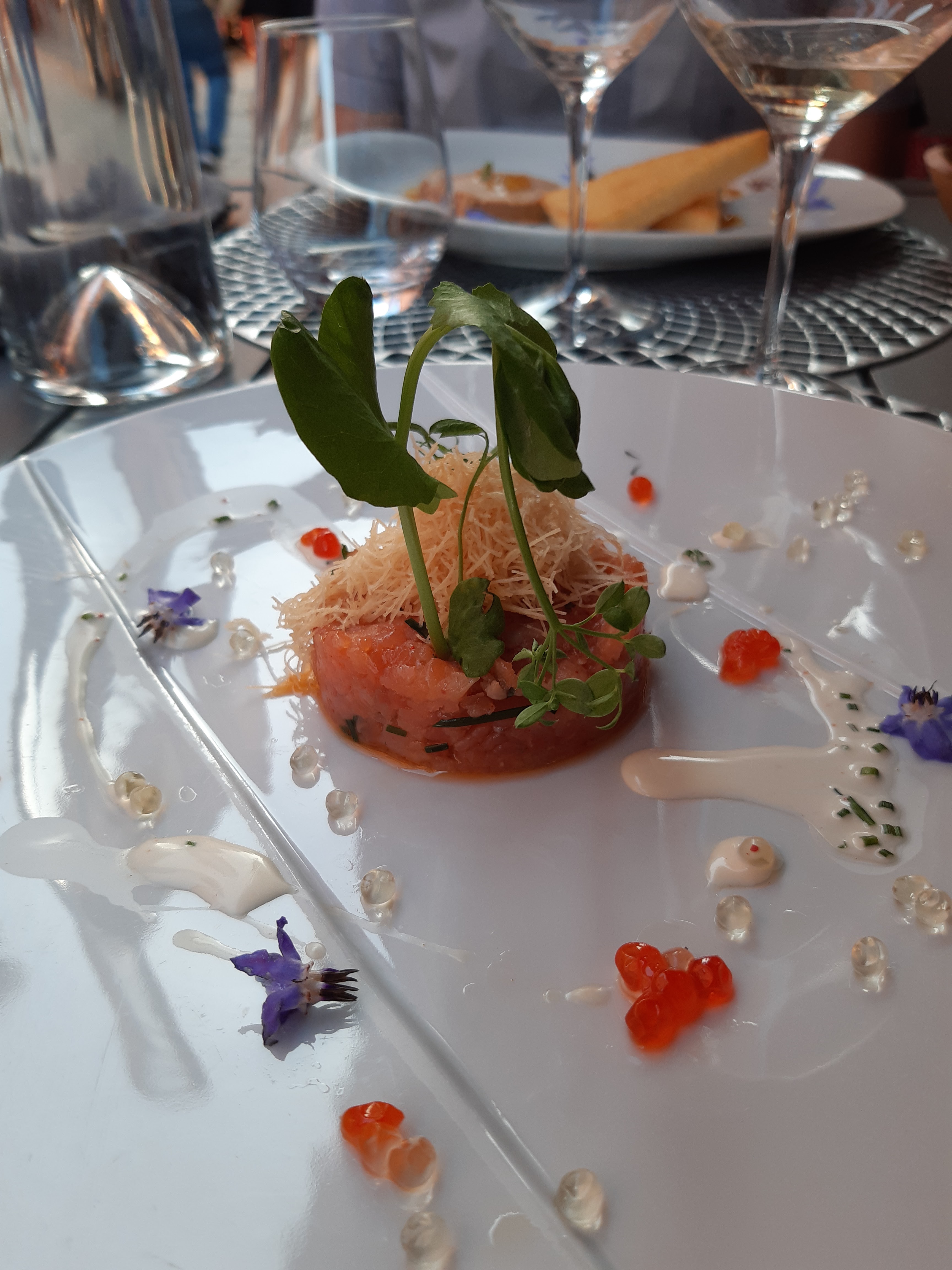 Un dîner en terrasse excellent. De l entrée jusqu'au dessert en passant par le vin! Explication de l entrée par le chef et serveur pro et sympa. Allez y vous ne regretterez pas.