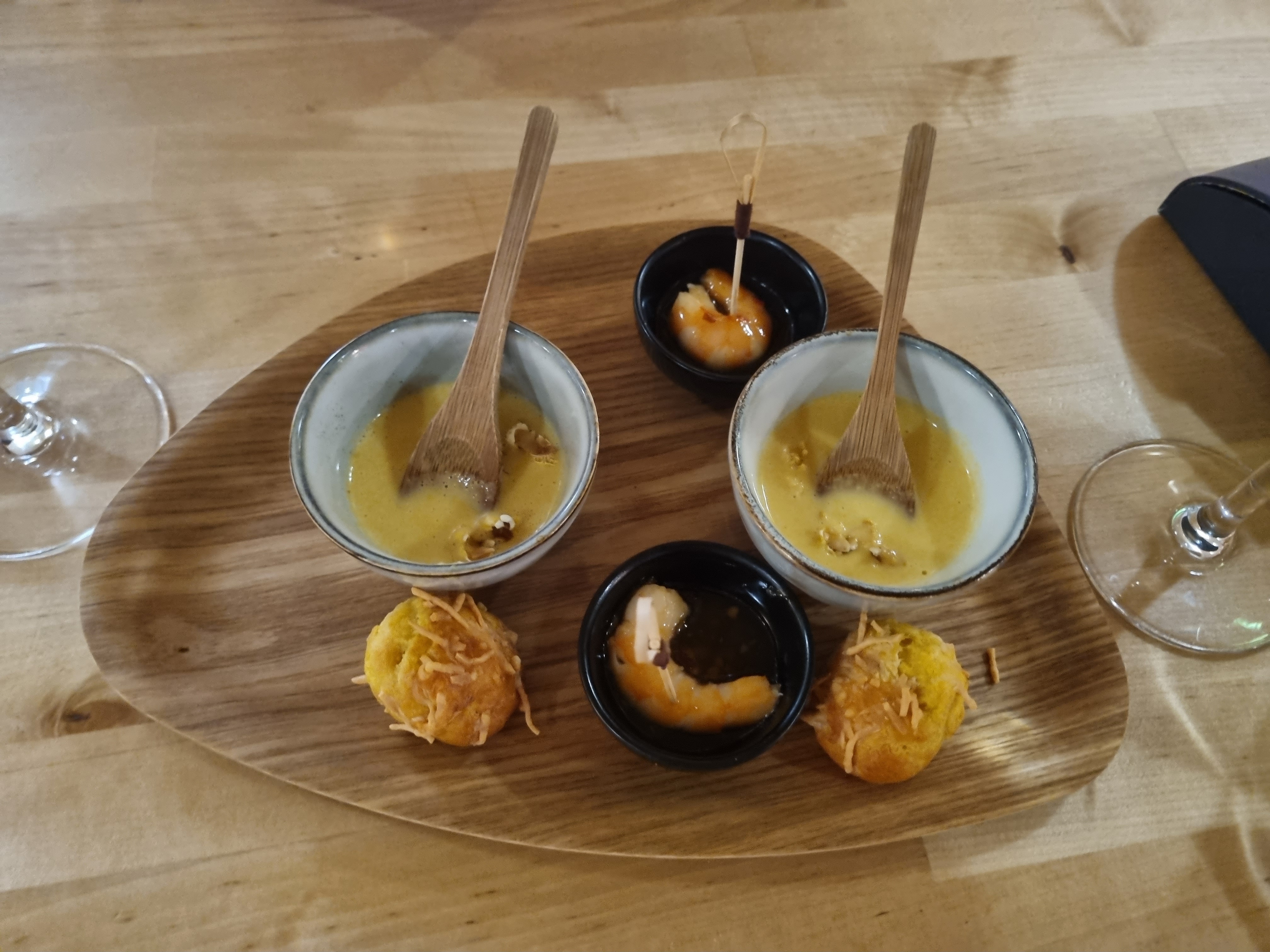 Très belle découverte ce midi, Un accueil merveilleux, La cuisine délicieuse et goûteuse, De délicates attention en amuses bouches et avec le café Je recommande très vivement.