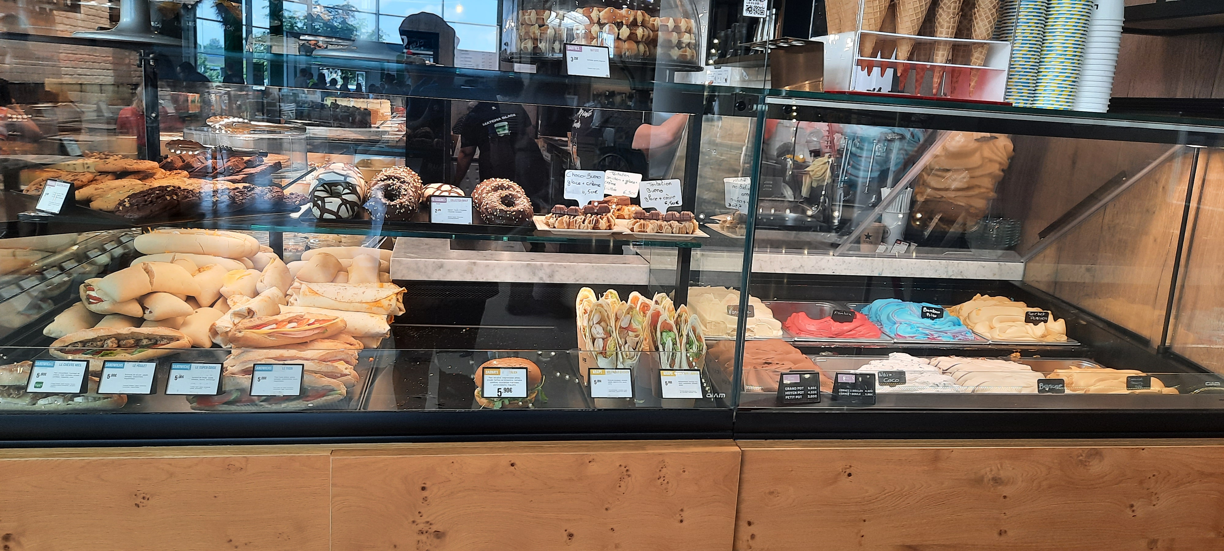 J'y vais de temps en temps, le personnel est très souriant, il y à beaucoup de choix autant sucré que salé. C'est vrai que les prix peuvent paraitre un peu élevé mais j'ai envie de dire, comme partout en fait 😅 Puis les muffins à 8000 cal. par bouchées, faut pas trop en demander non plus vu le prix du beurre 😘 (je plaisante). J'apprécie beaucoup qu'il y es le choix avec du lait végétal pour les boissons, c'est les seuls à le proposer dans la galerie marchande ! (il me semble) Le matcha latte au lait de coco est très bon ! Le seul bémol, c'est que les places assises sont rapidement prise mais le local est petit en lui-même.