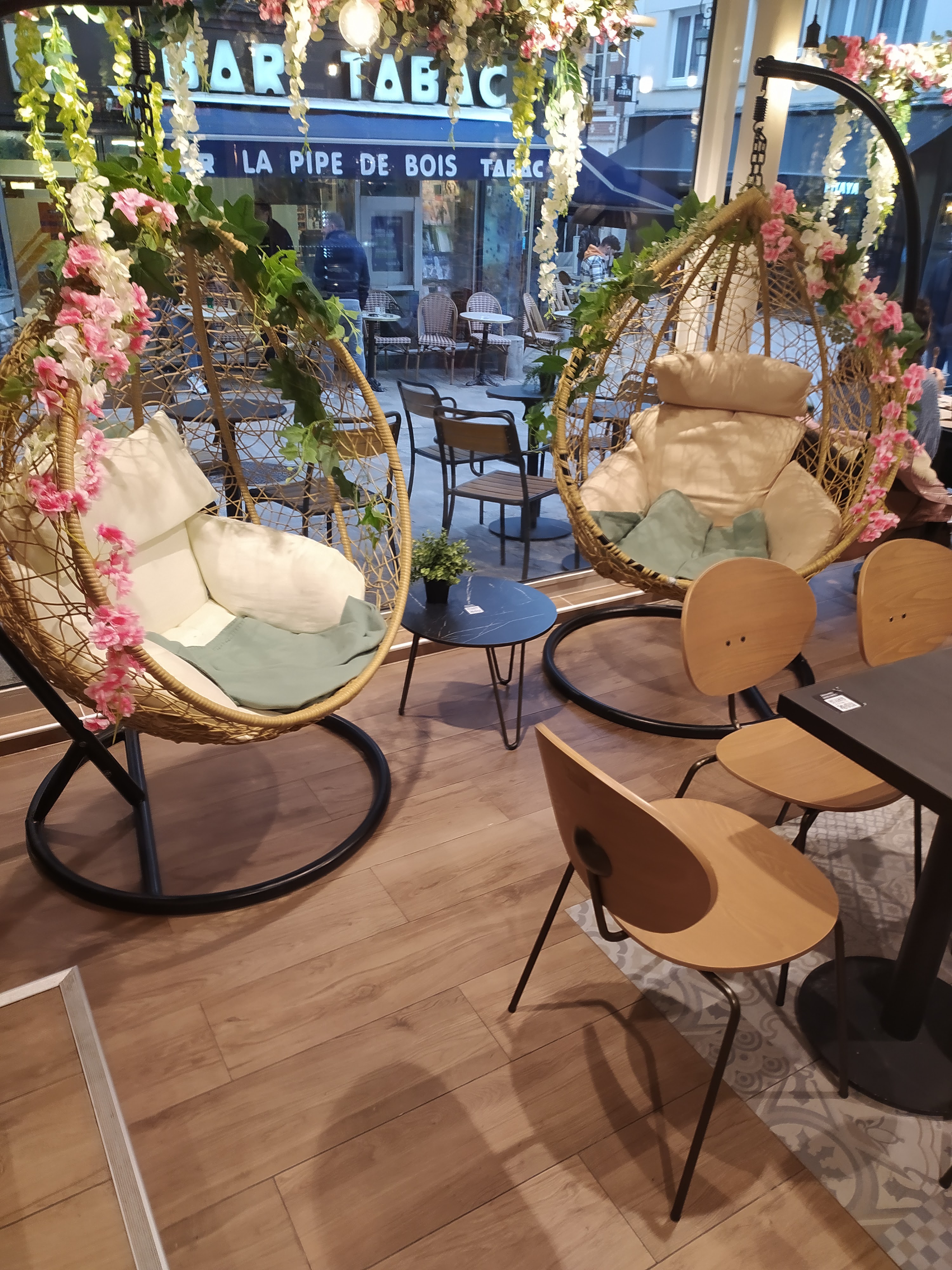 Je suis venue pour un café. Accueil chaleureux et endroit agréable pour se poser tranquillement. J'aime beaucoup cet endroit. Je repartage mon avis après l'avoir visité pour la troisième fois. Vous vous sentez à l'aise et il n'y a pas de pression pour laisser votre place aux autres personnes. Il y a toujours des places disponibles. J'ai voulu essayer de m'asseoir sur le fauteuil suspendu et bien j'y suis restée pendant un bon moment. Il est très confortable en plus il y a une prise derrière ce qui m'a permis de charger mon téléphone en même temps.