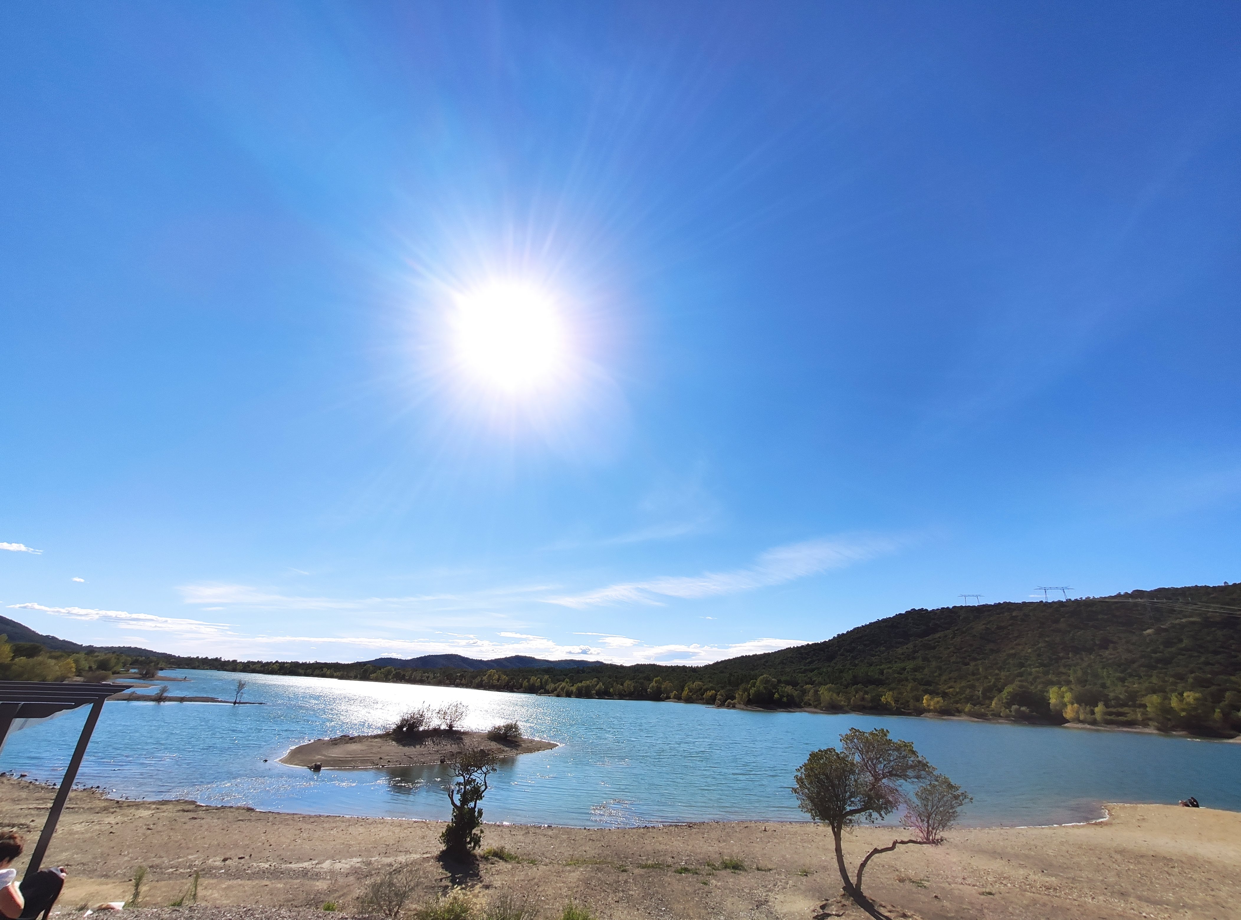 Que c est triste ce lac qui a disparu à moitié, ce fond blanc pavé de cailloux l envers du décor !! La maison du lac.est fermée , triste, triste....pas envie d y retourner,,,,
