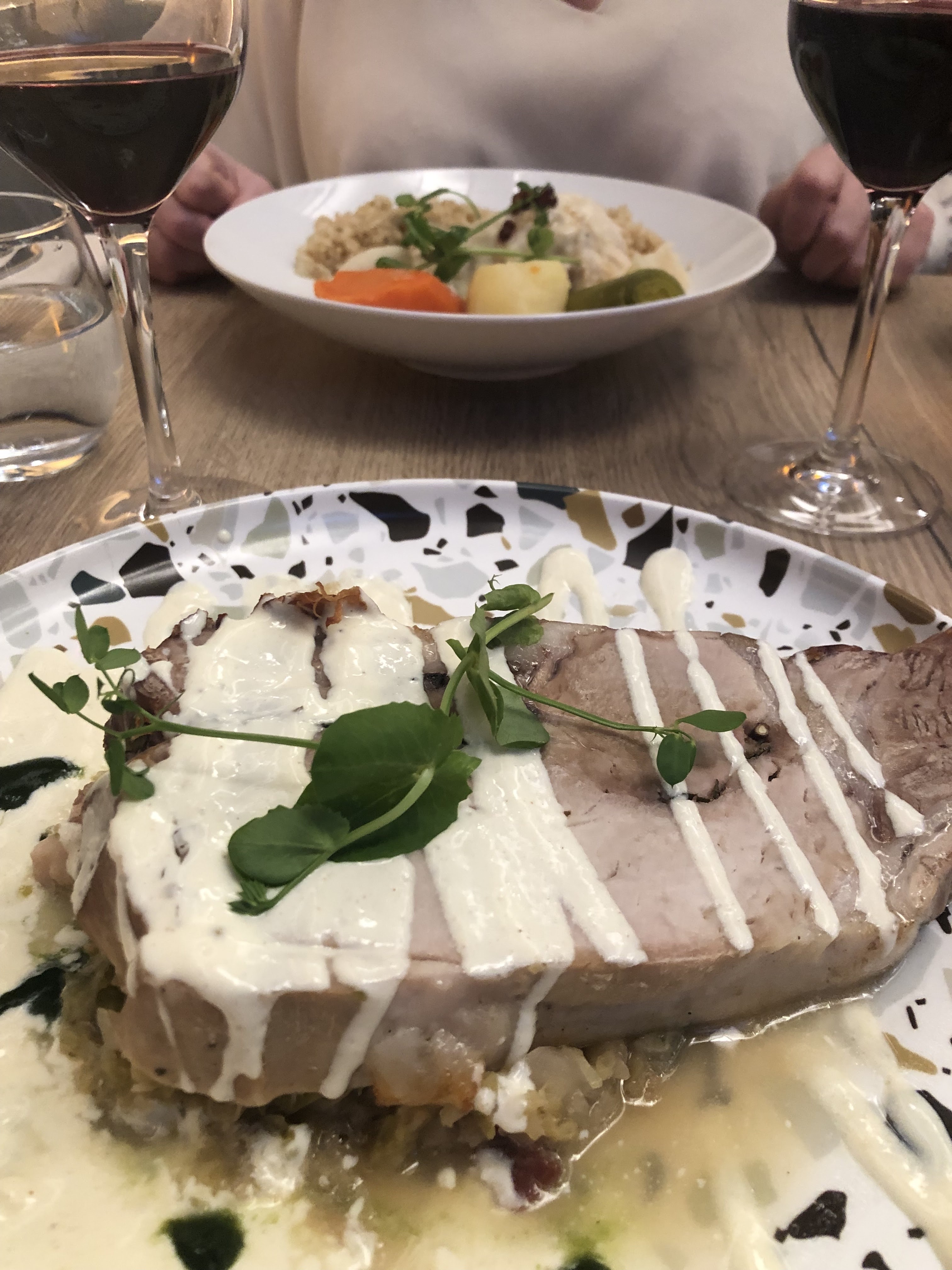 Restaurant de l'hôtel très chic, service au top. De très bons vins à la carte, menu convient aux végétariens. On a passé une très bonne soirée en amoureux mon chéri et moi 💖