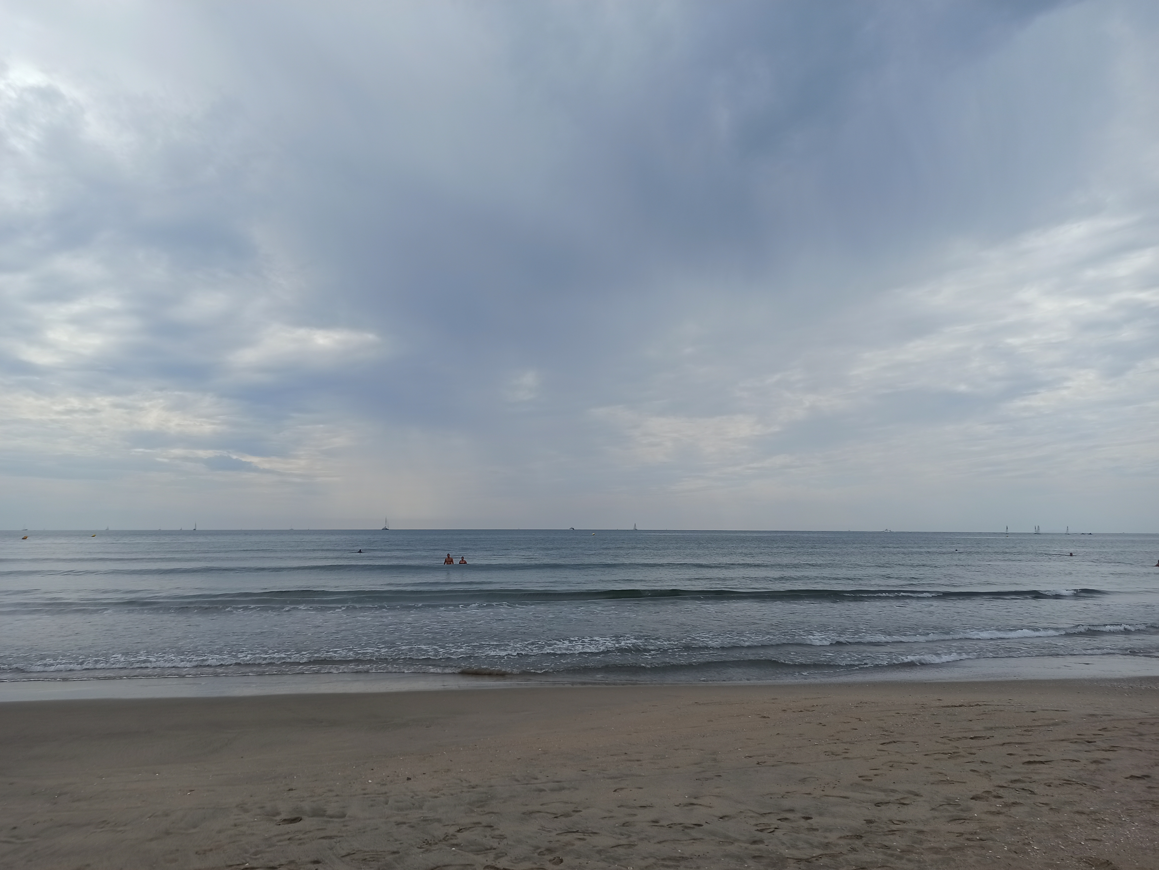 Belle plage familiale de sable fin. On peut nager assez loin ou aller sur l 'épi.