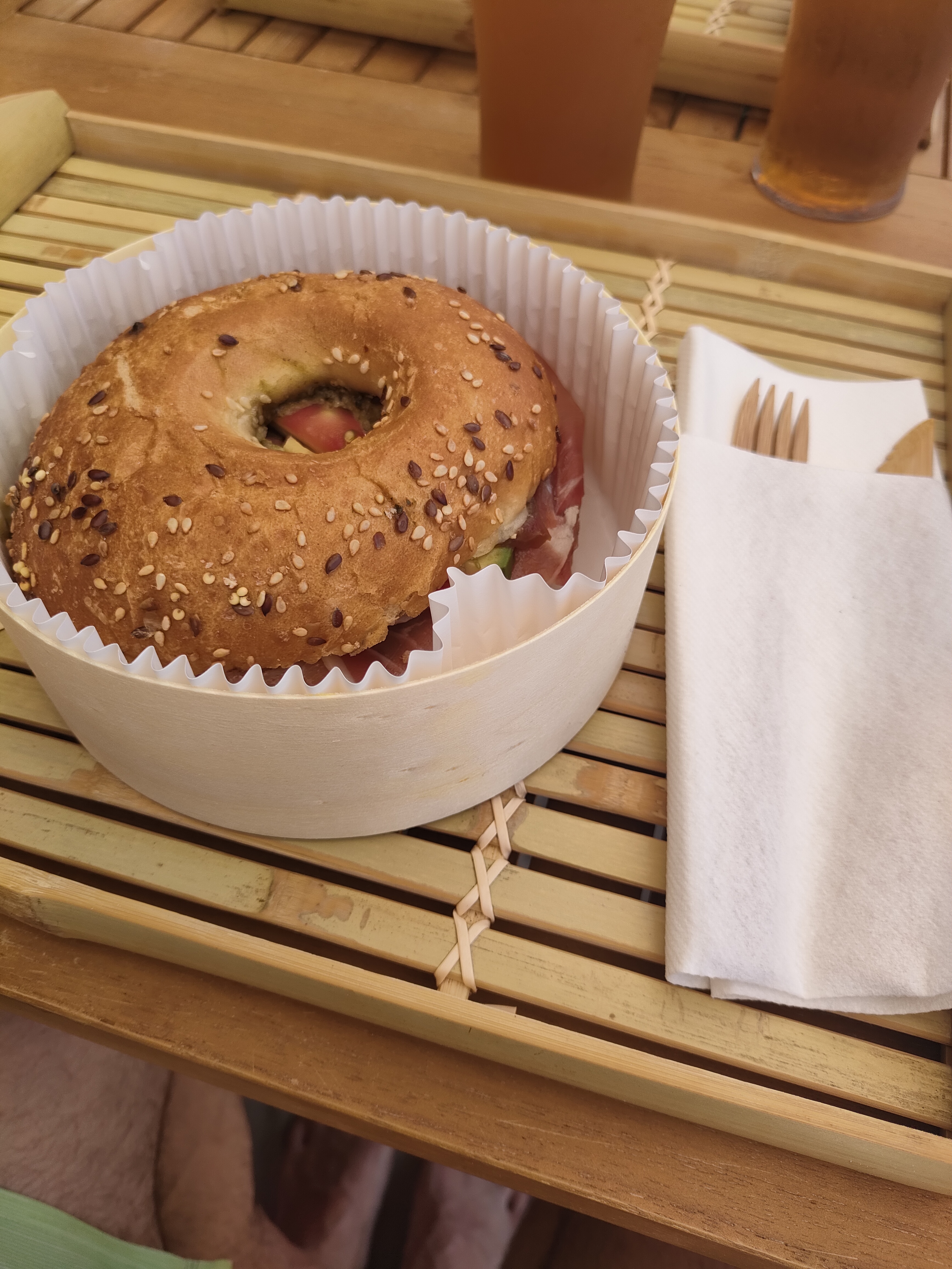 Paillote sympa, le bagels excellent Formule transats + repas bon rapport qualité prix