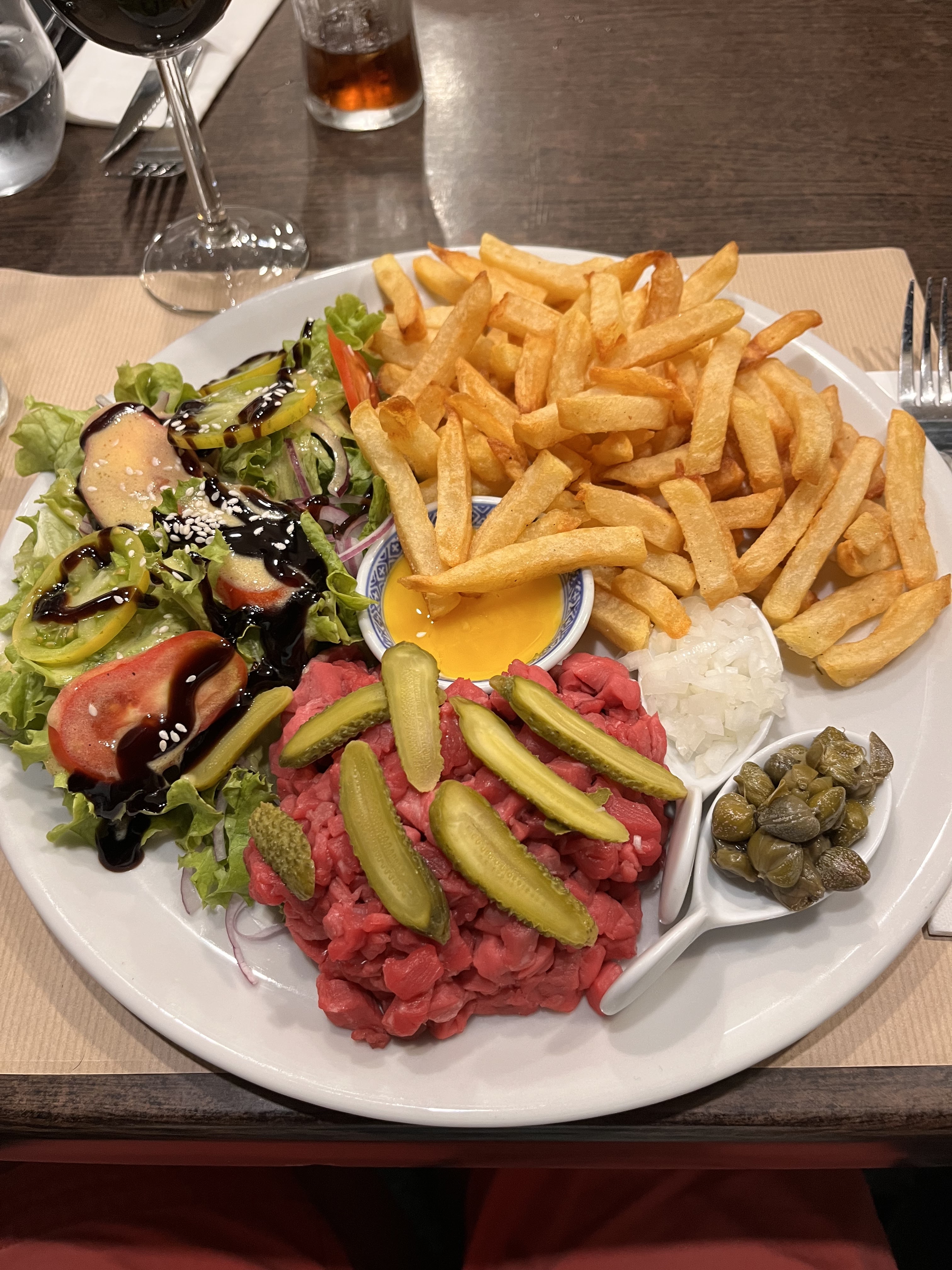 Bon restaurant. Pour ma part, j’ai pris un tartare de bœuf à l’italienne au couteau qui été super bon.