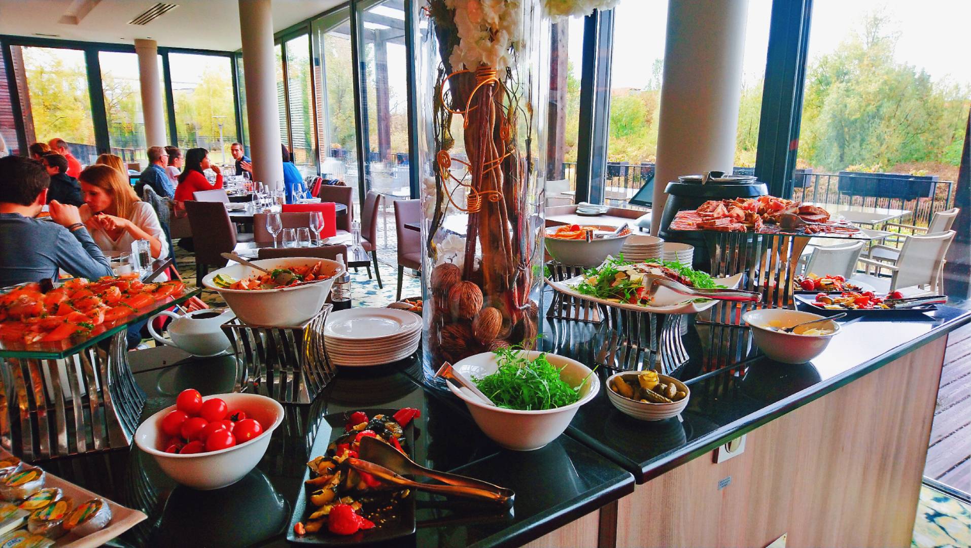 Restaurant d'hôtel, sans passion, sans surprise, un peu cher pour la qualité, mais si vous avez la chance de trouver une table sur la petite terrasse, Alors jolie vue sur un étang et un grand potager. Oui à 2 pas de Ikea et Auchan (même pas 5 minutes à pied) un étang et une terrasse. Belle surprise dans ce quartier, à découvrir si vous êtes sur places (pas plus).
