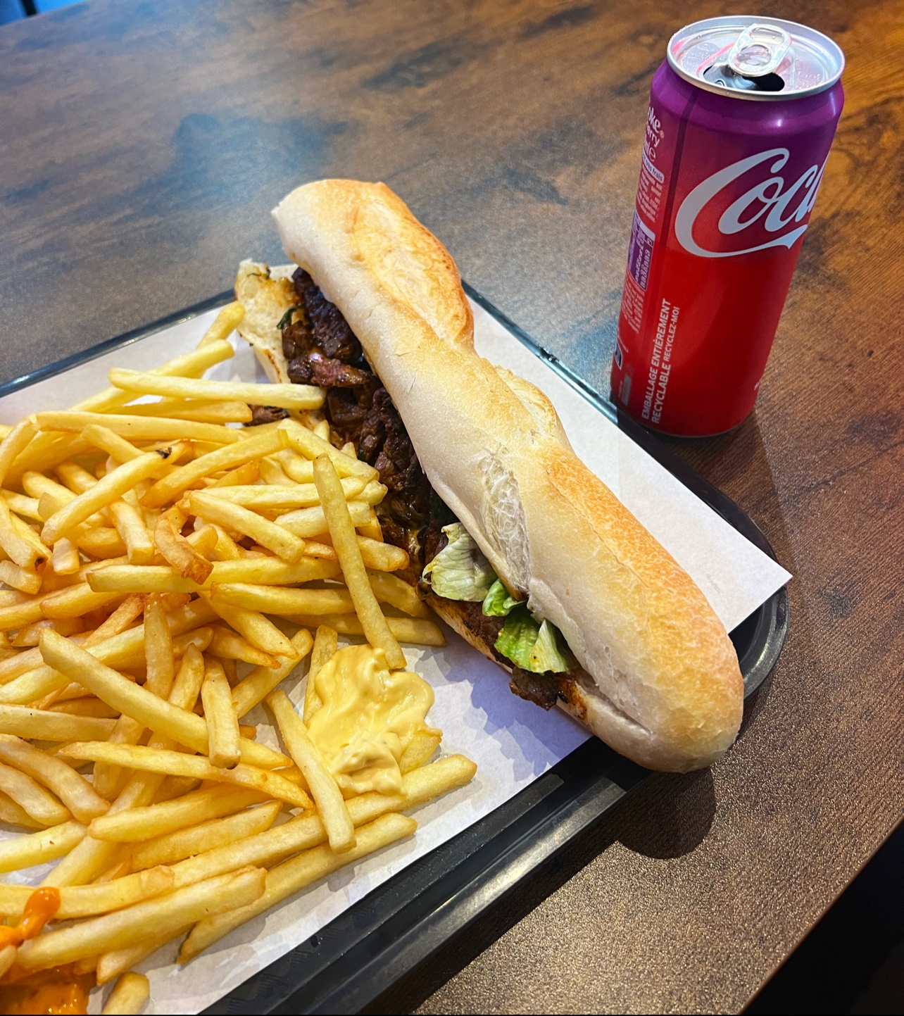 Lieu atypique pratique lorsqu’on sort du train , service rapide et petite particularité recette baguette fraîche et viande fraîche à prix bas. Merci encore pour l’accueil et votre disponibilité. Ma femme a commandé le burger au poulet, la cuisson était parfaite et la sauce verte bien présente.