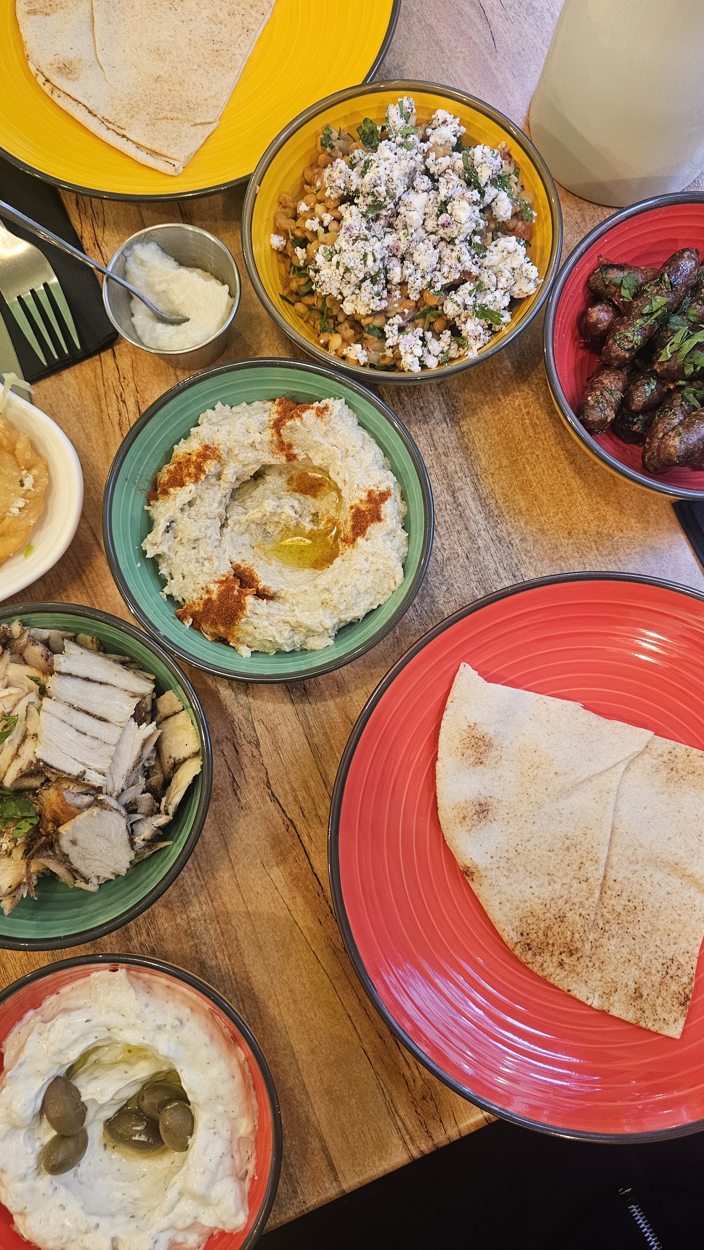 Agréable et convivial, le houmous était doux et excellent.