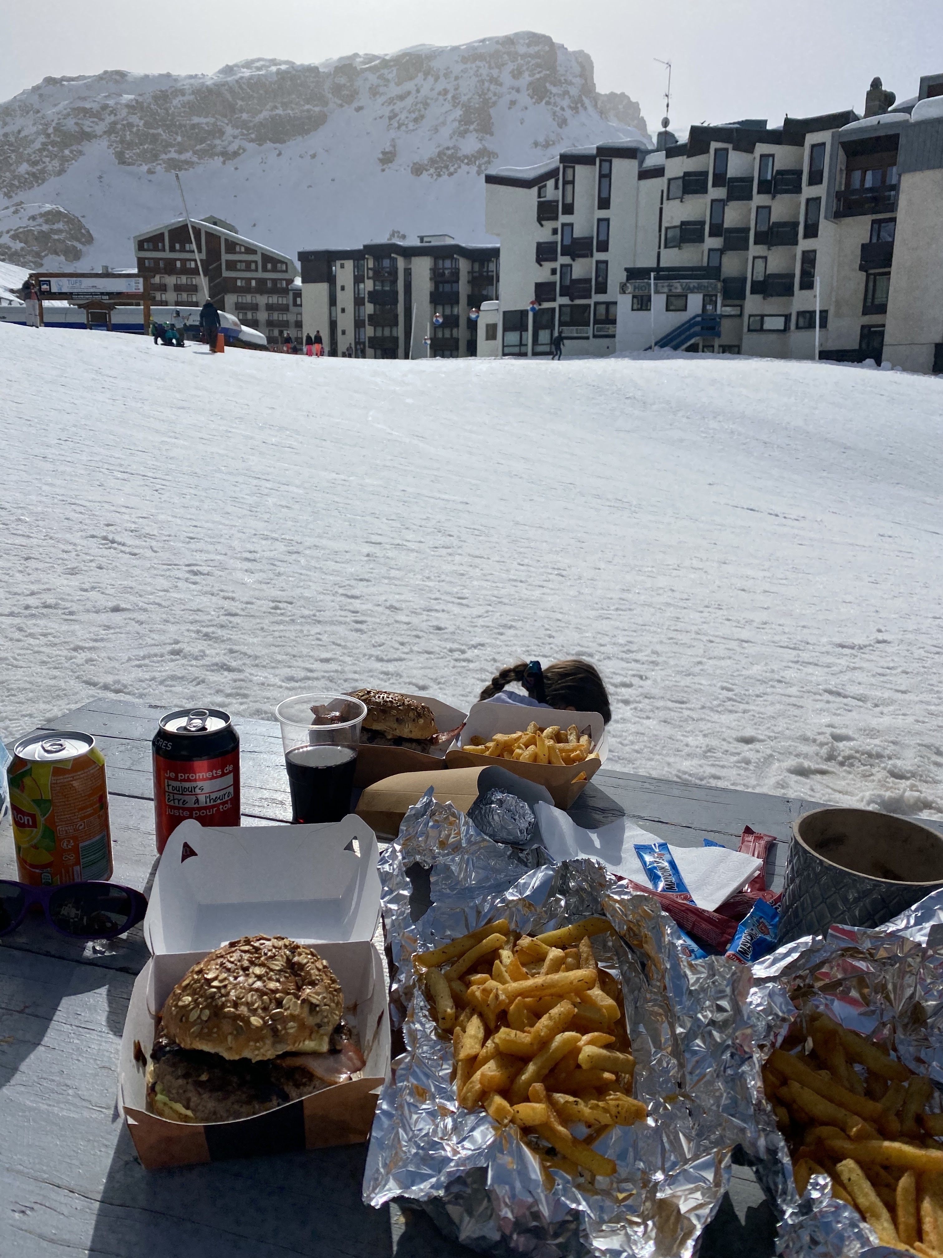 La meilleure terrasse au Val Claret car spacieuse et loin des voitures. Un service bien sympathique quoique un peu désorganisé. Mais nous étions en vacances donc on s'en fichait bien. Un terrain de boule pour prolonger l'apéro le plus longtemps. Nous n'avons pas goûté la cuisine mais la carte était alléchante
