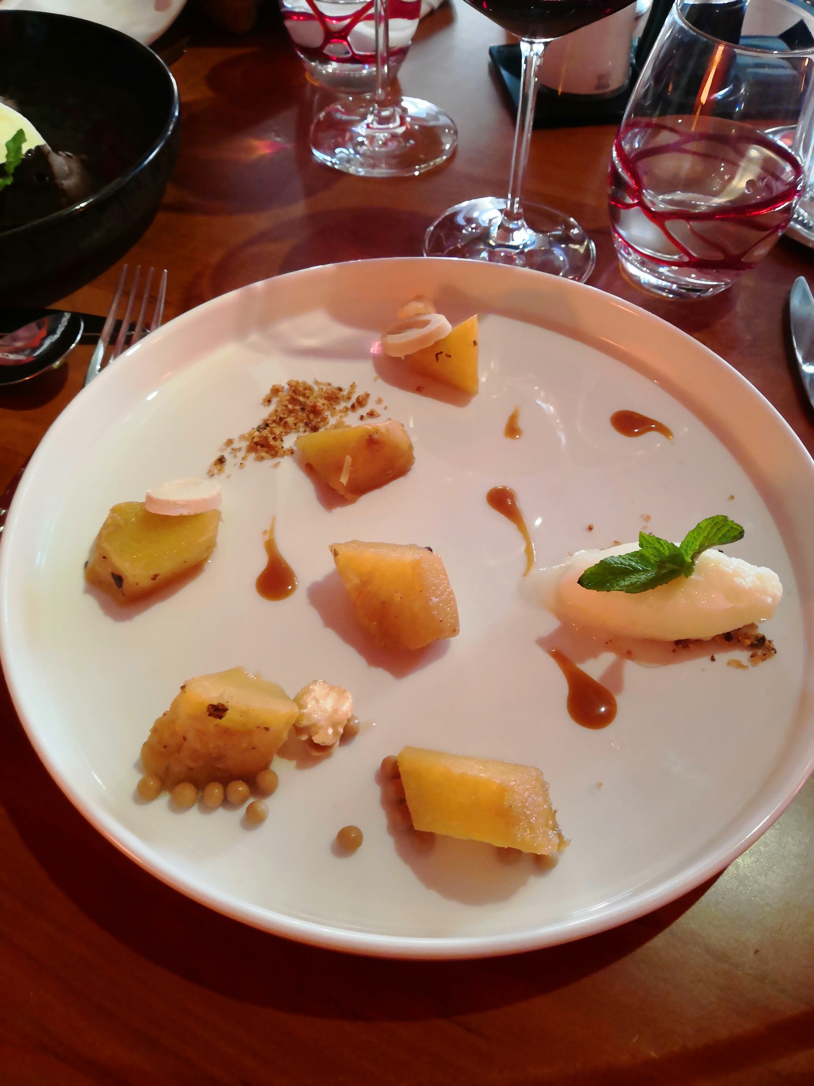 On ne trouve que peu d'alternatives végétariennes c'est dommage. J'ai donc opté pour la salade de chèvre, agréable mais relativement simple. Desserts très fins, délicieux. Nous avons pris le café gourmand et la mousse ananas. Serveurs souriants, accueillants attentifs. La salle est chaleureuse. Nous avons passé une agréable soirée, expérience à renouveler.