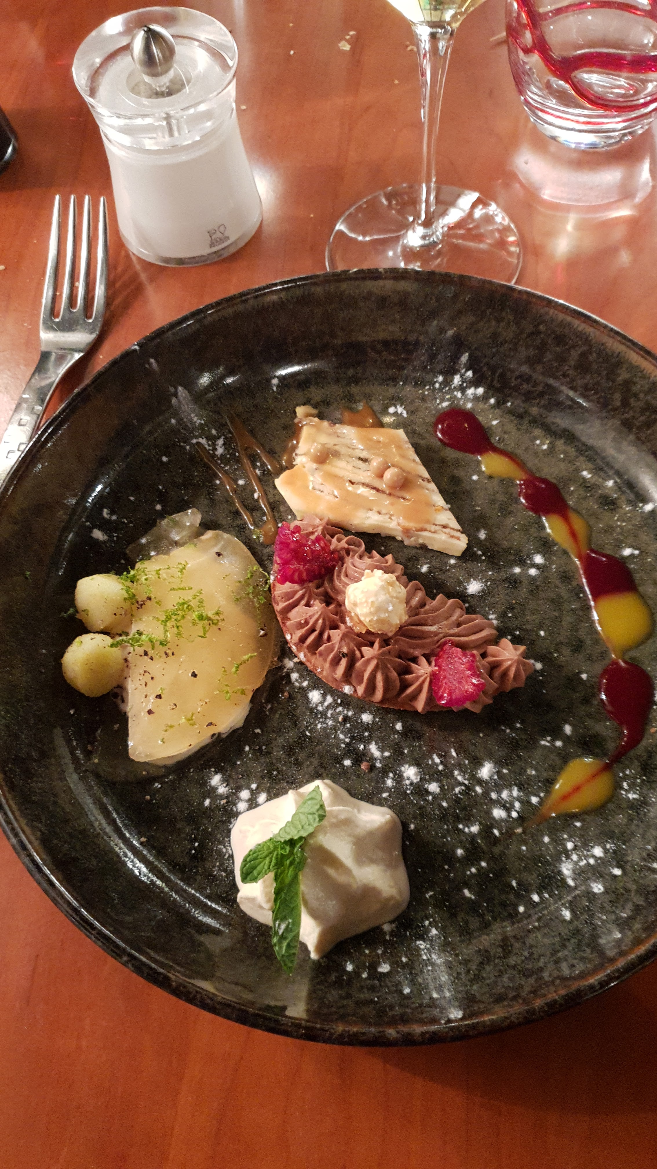 Belle découverte Service irréprochable Cuisine excellente, note particulière pour le dessert au chocolat qui est divin. Nous avons passé une très belle soirée et nous reviendrons avec plaisir.