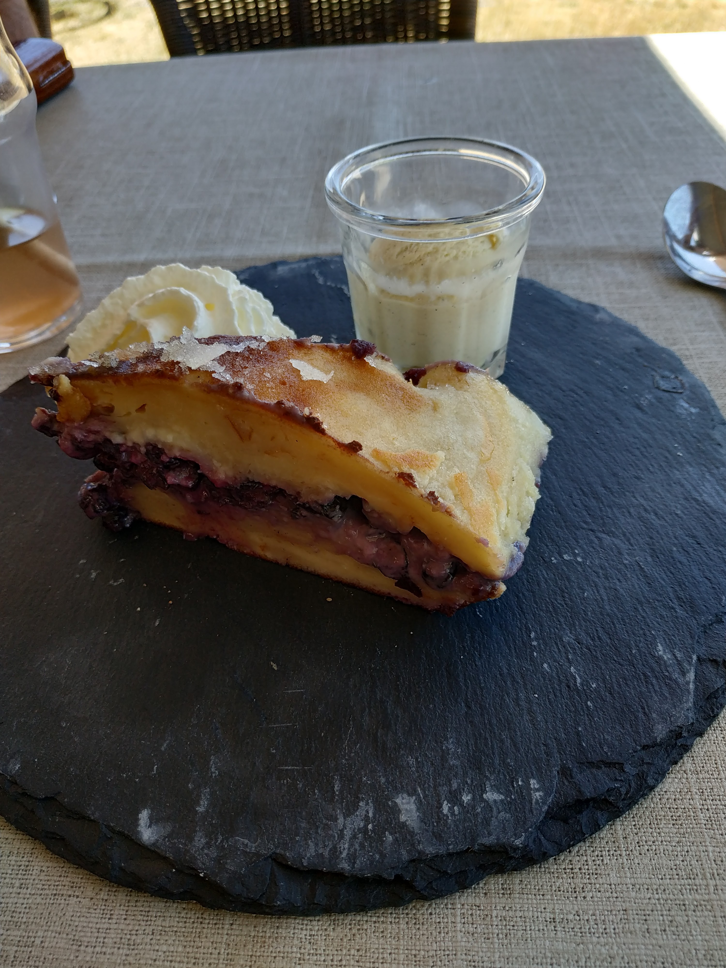 J ai pris un dessert avant de rentrer à la fin de mes vacances. Accueil agréable.. accepte les animaux. Superbe terrasse face à la montagne