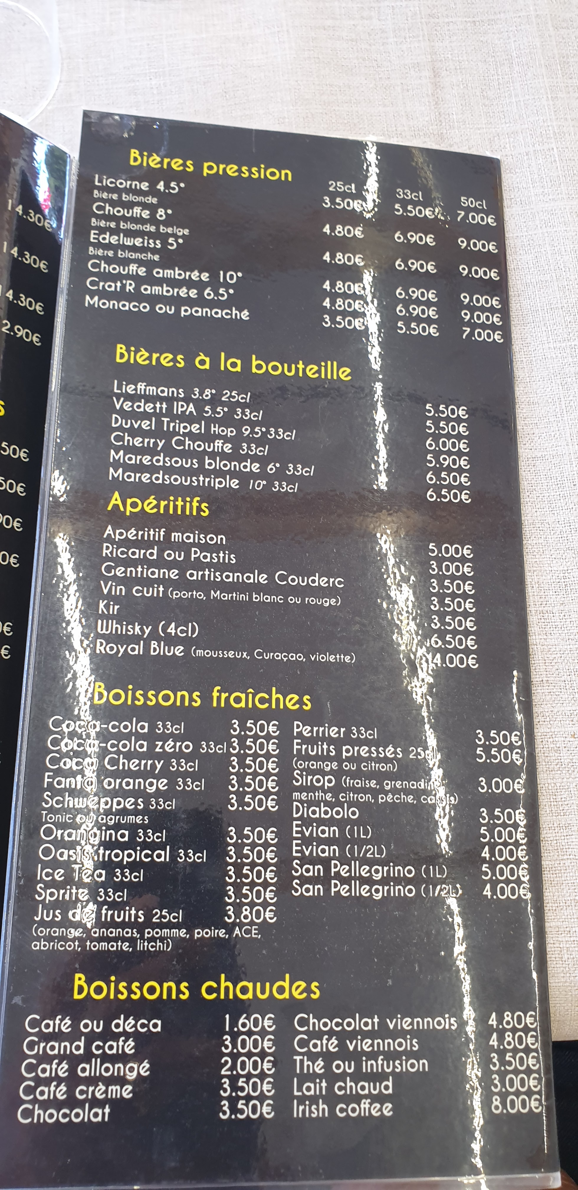 Bières et repas pris en terrasse le soir, service bien, prix corrects. Plats et desserts terminés. Rien d'autre à dire.